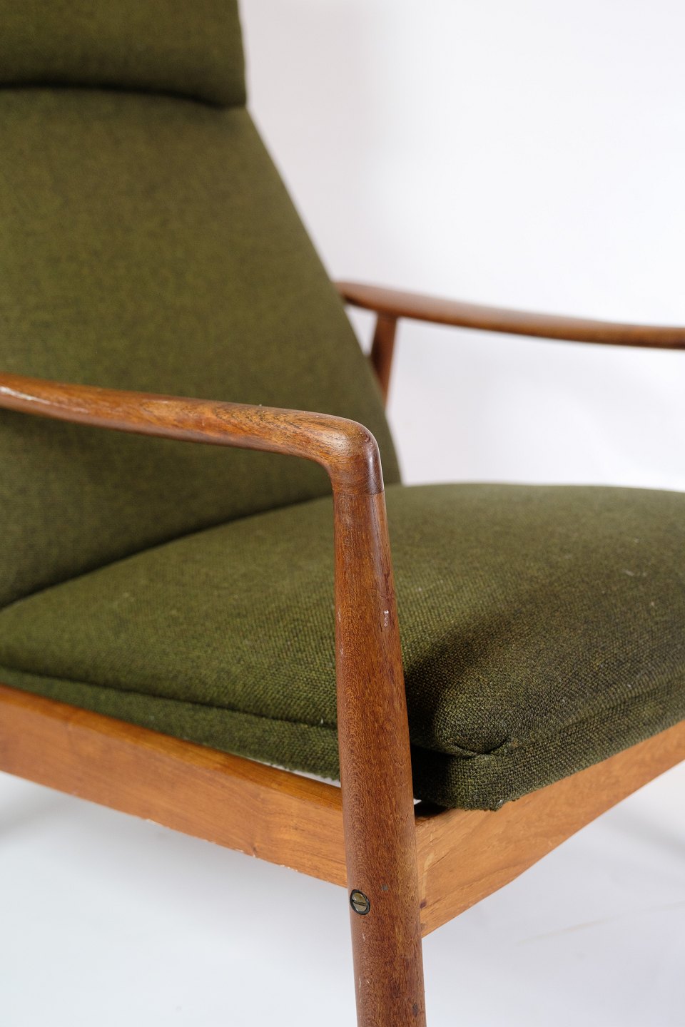 Sæt Af 2 Lænestole Med Skammel - Teak - Grønt Stof - Alf Svensson - Fritz Hansen - 1960erne