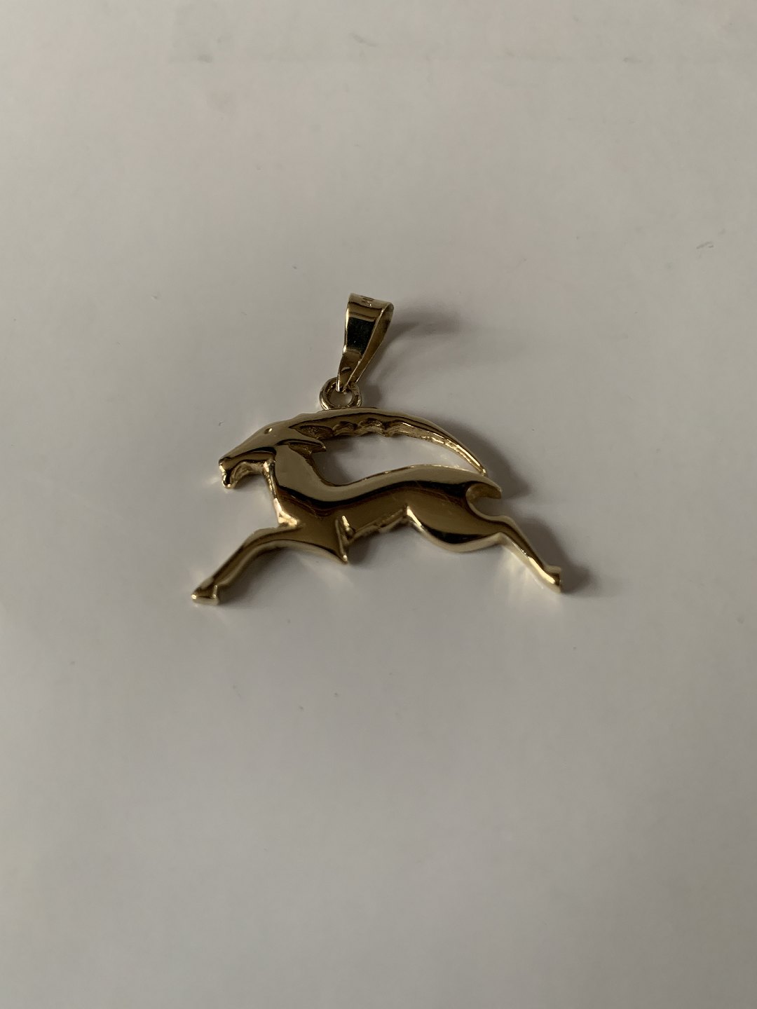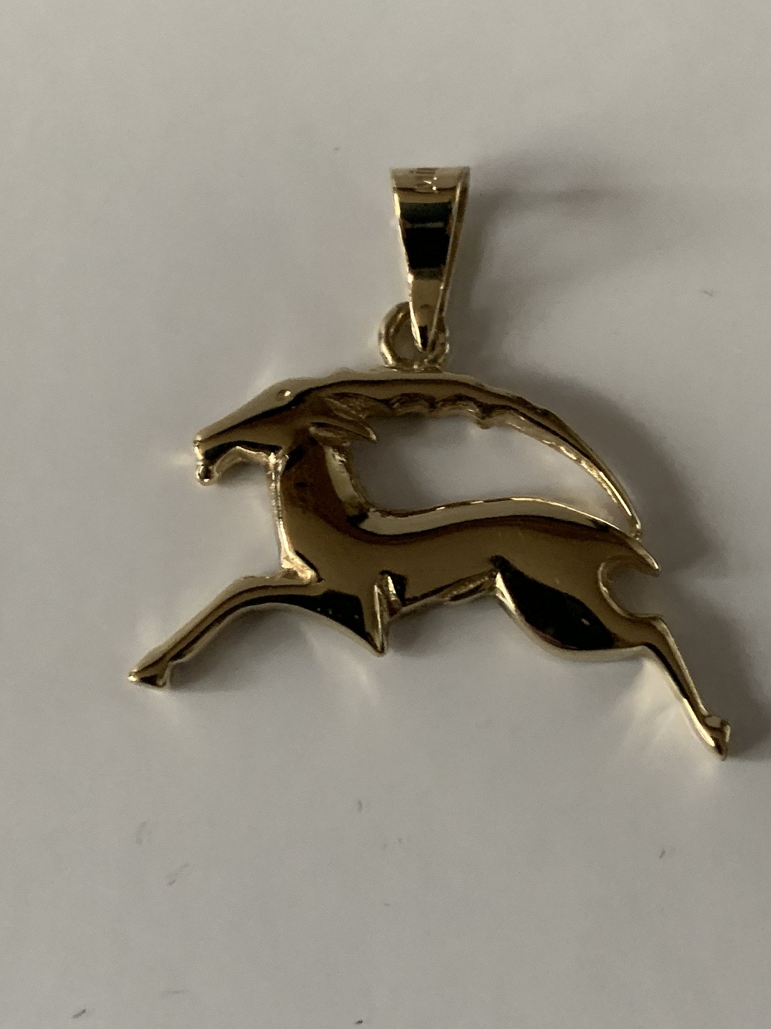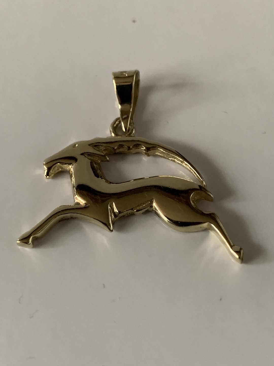 Vedhæng i 14 karat guld, lavet som stenbuk. Stemplet 585.