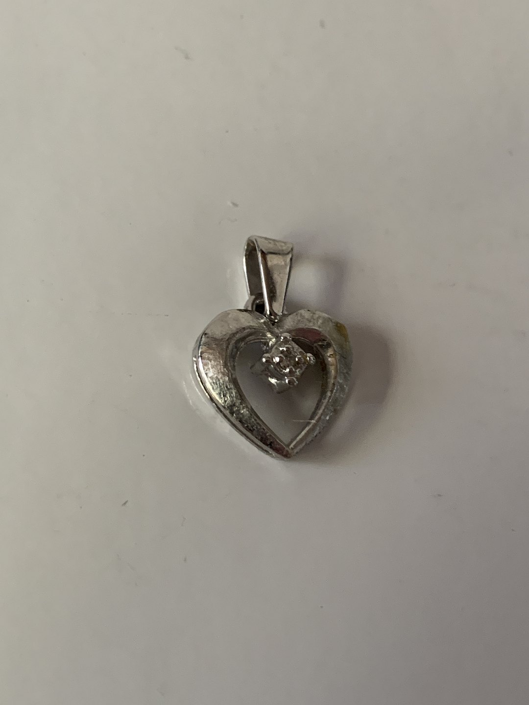 Flot og diskret vedhæng, udformet som Hjerte med en diamant i 14 karat hvidguld. Velegnet til halskæde, eller som vedhæng i armbånd. Smukt minimalistisk og klassisk smykke, der har været brugt i mange år.