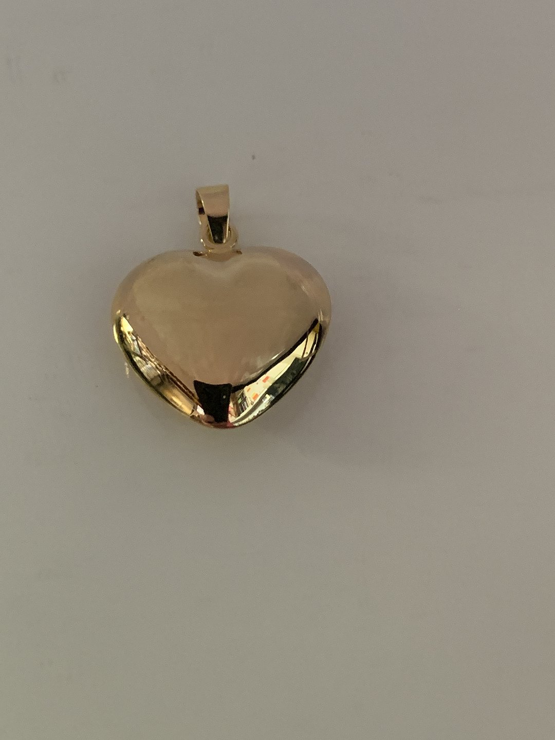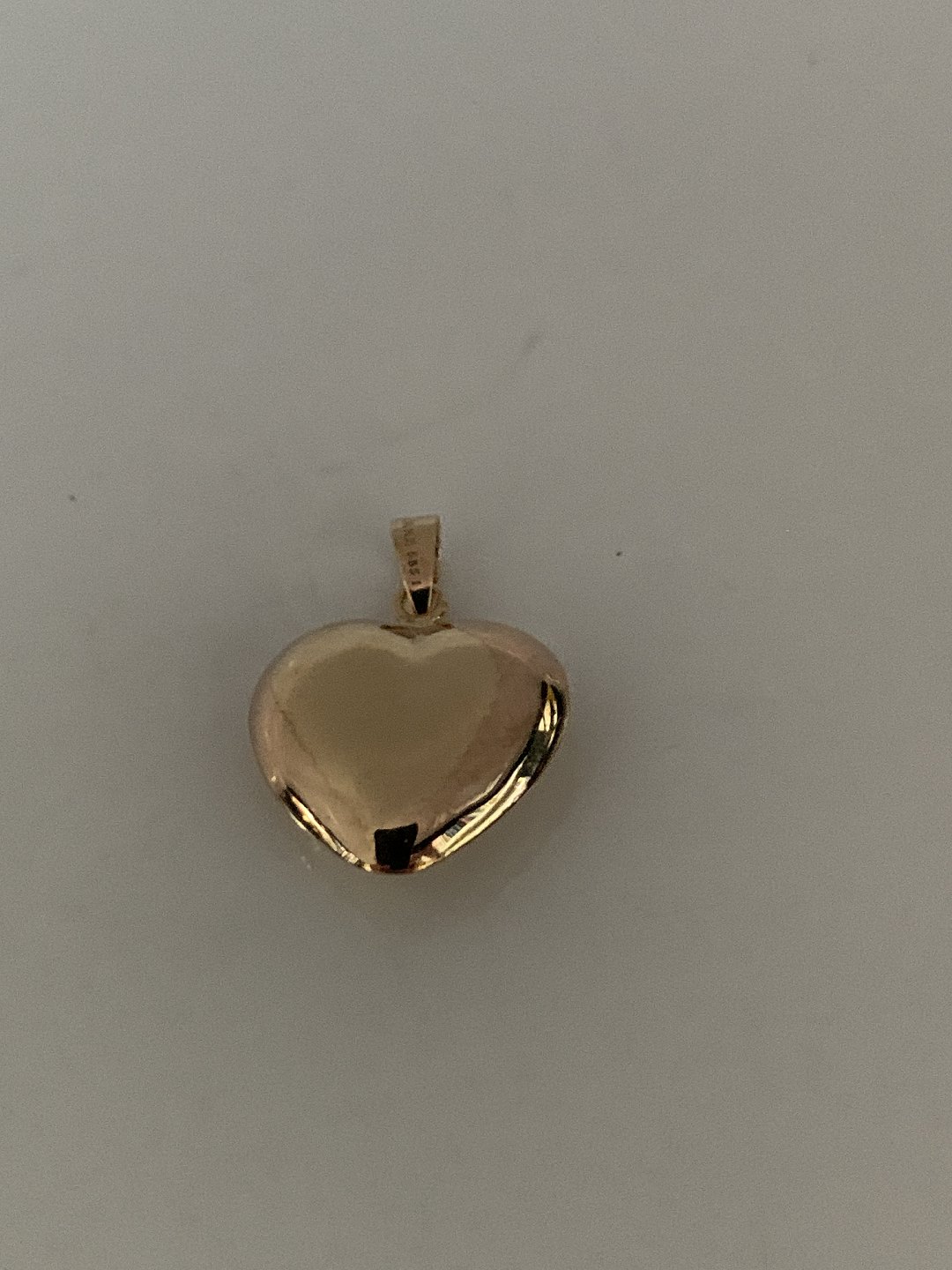 Nice and discreet pendant, shaped like a heart in 14 carat gold. Suitable for necklace. Beautiful minimalistic and classic jewelry.