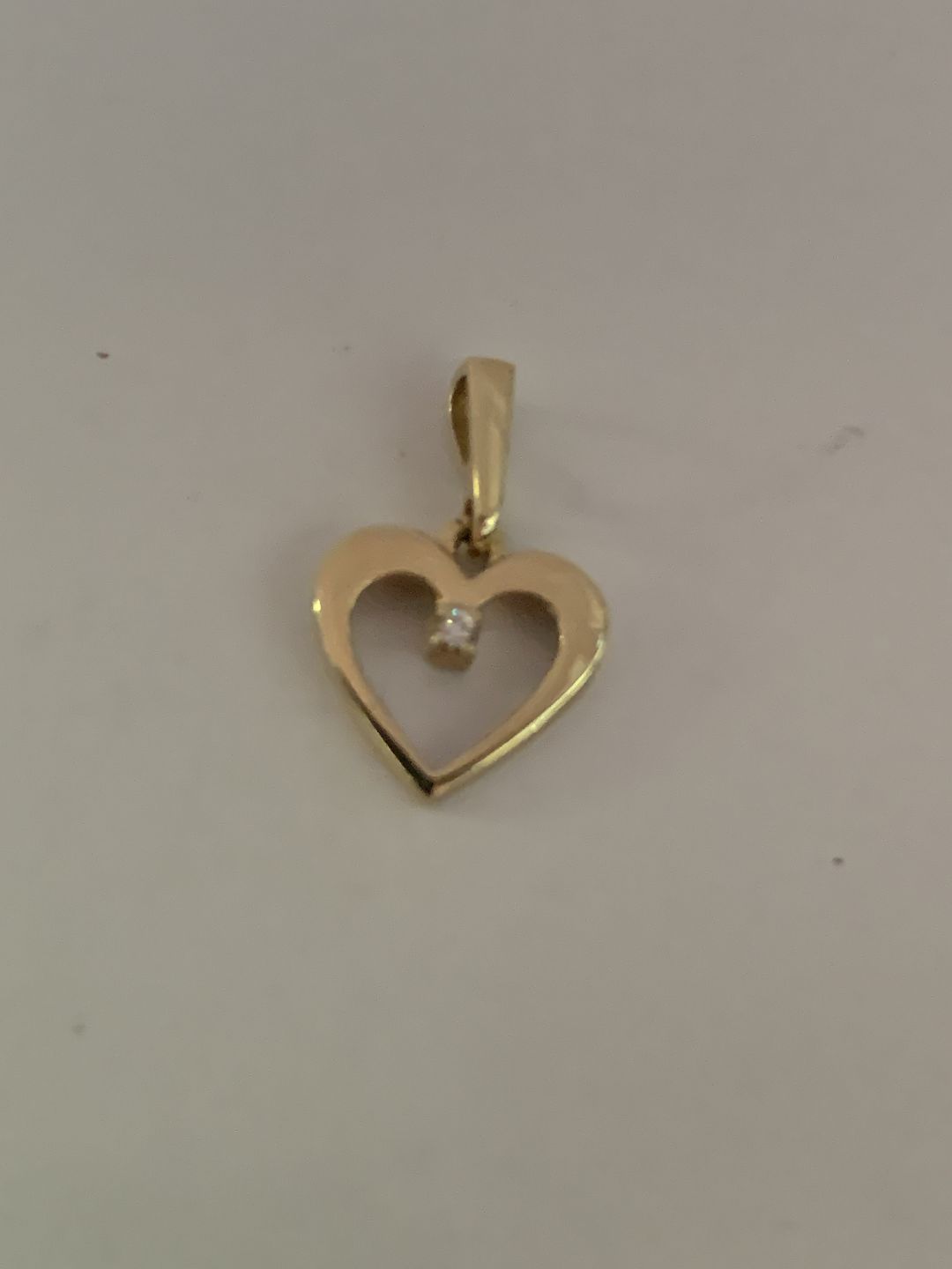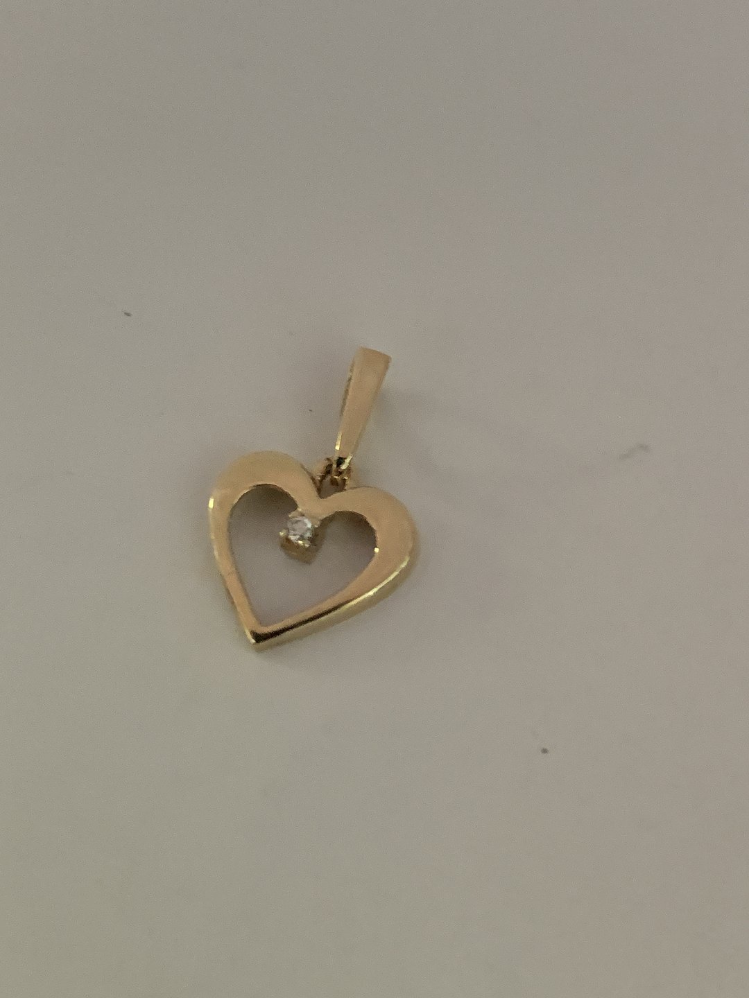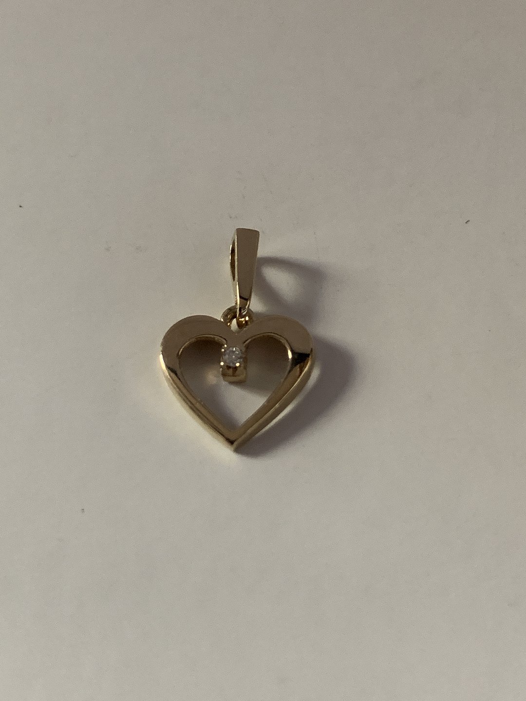 Nice and discreet pendant, shaped like a heart in 14 carat gold with a diamond. Suitable for necklace. Beautiful minimalistic and classic jewelry.