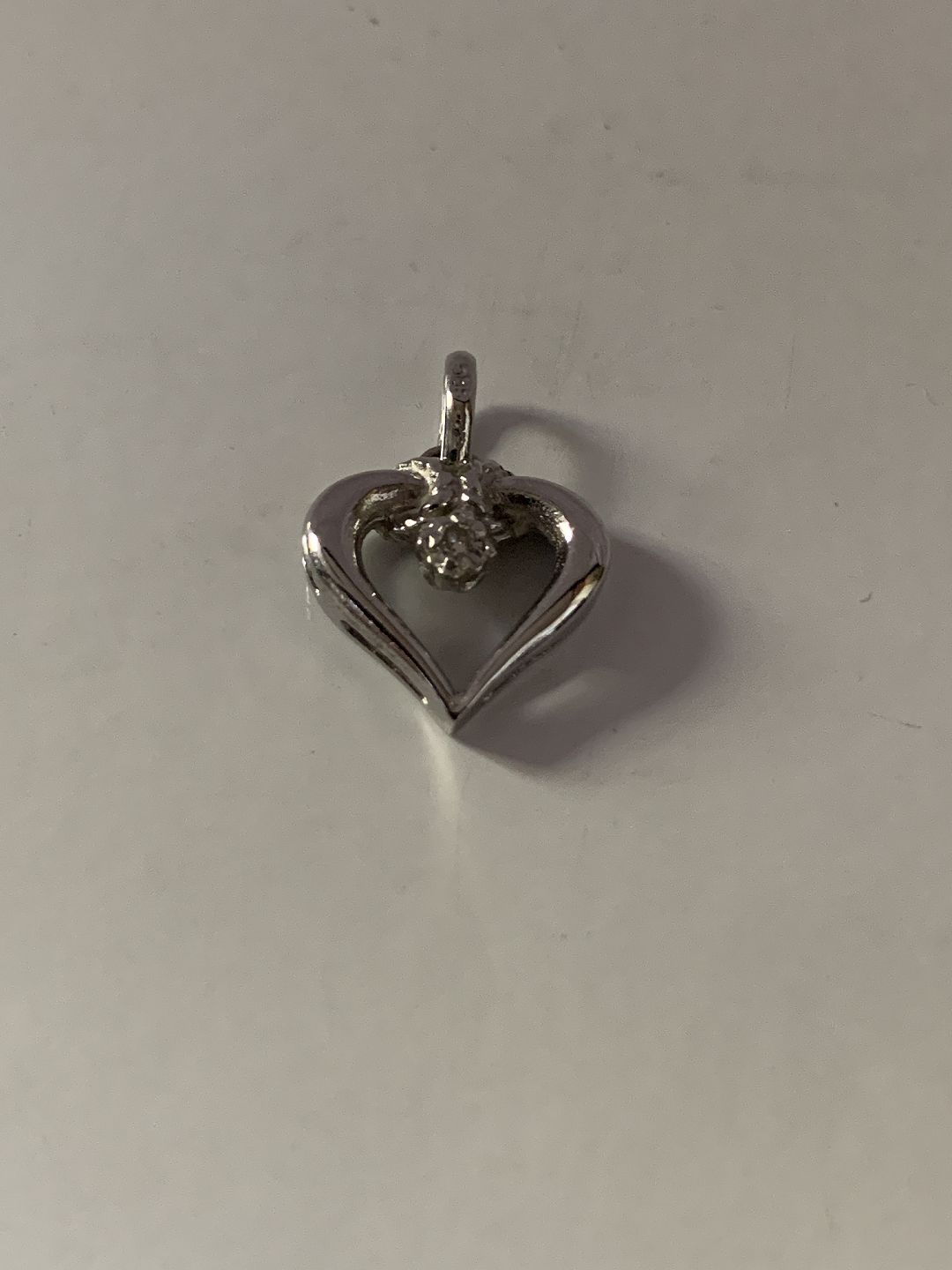 Flot og diskret vedhæng, udformet som Hjerte med en diamant i 14 karat hvidguld. Velegnet til halskæde, eller som vedhæng i armbånd. Smukt minimalistisk og klassisk smykke, der har været brugt i mange år.