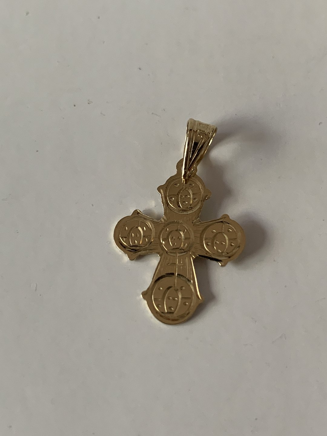 Klassisk Dagmarkors med den lidende Kristus på forsiden, og de 5 store på bagsiden. Dagmarkorset er et traditionelt smykke, der ofte gives som dåbs- eller konfirmationsgave.