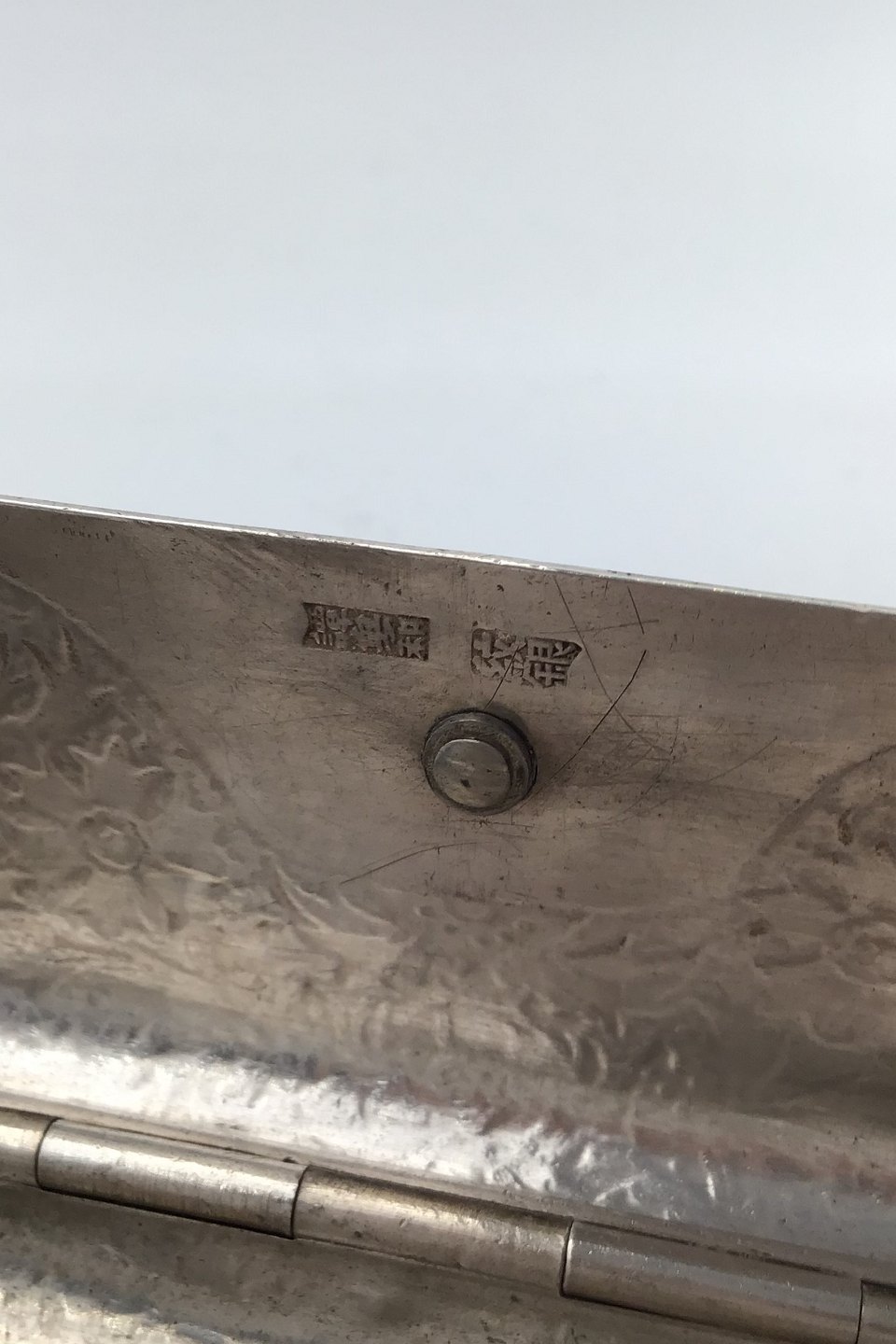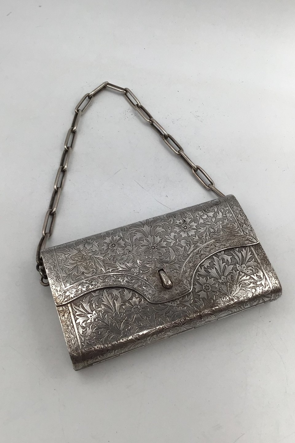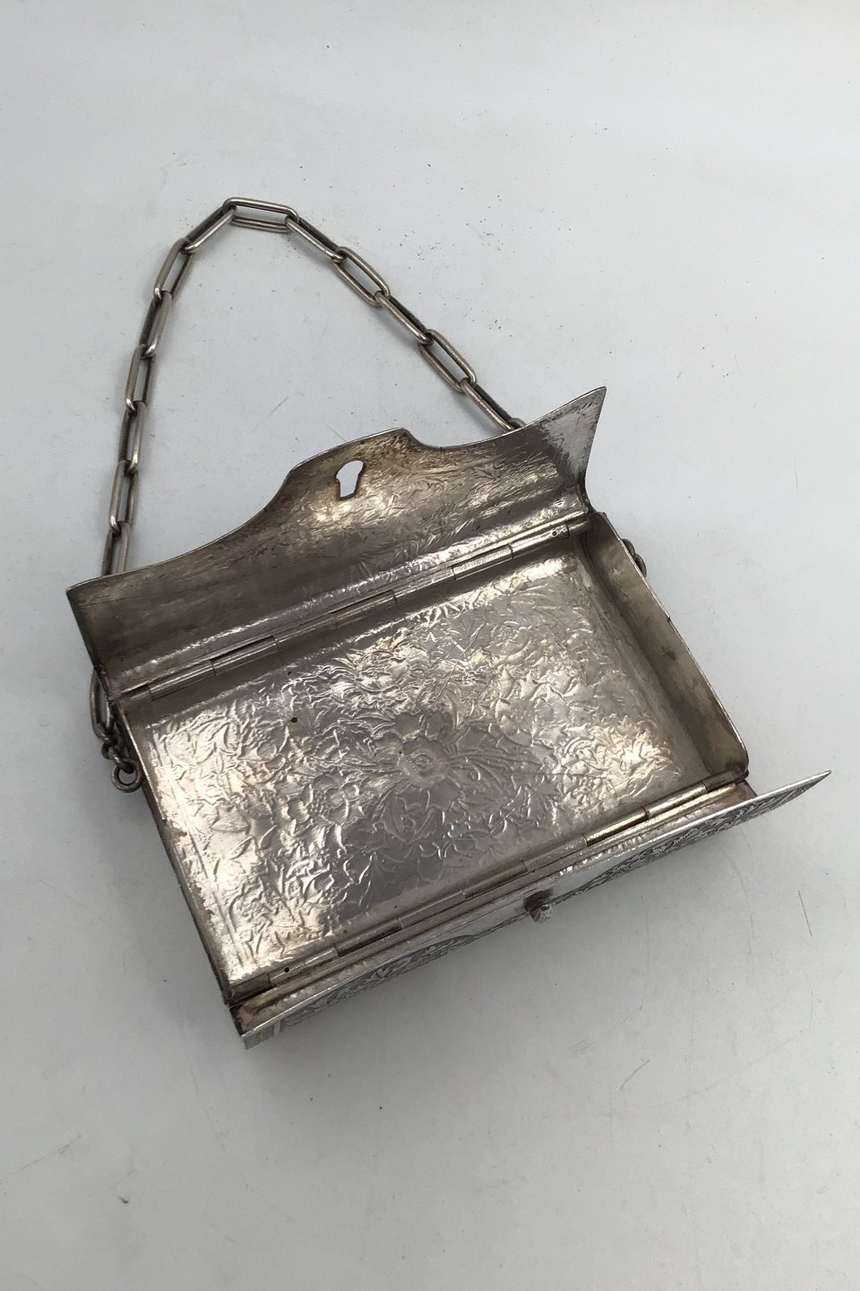Asian Silver Purse Measures 12 cm x 7 cm x 2.2 cm (4.72 inch x 2.75 inch x 0.86 inch) Chain 31 cm (12.20 inch) Weight 216.9 gr (7.65 oz)