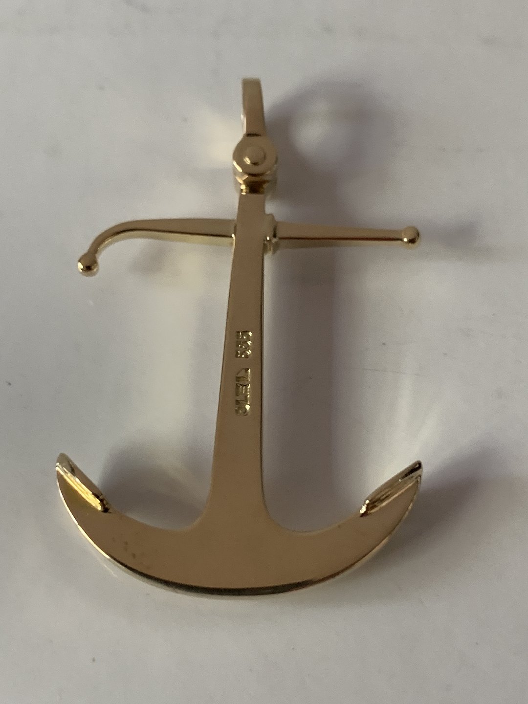 Flot og massivt guldvedhæng i 14 karat guld, udformet som anker. Vedhænget er stort, og vil være ideelt med en større guldkæde. Vedhænget udstråler styrke og liv, og henleder tanken til havet.