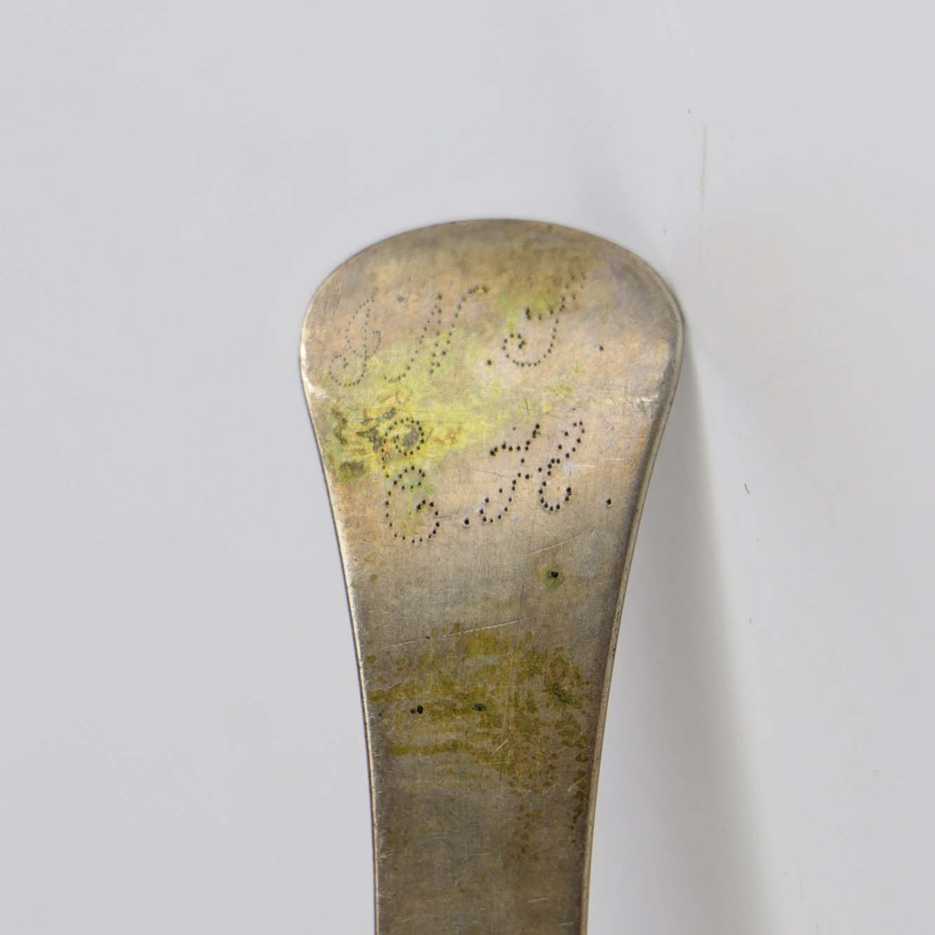Antik Tesi i sølv fra 1800 tallet med det indgaverede monogram J.N.J G.H på håndtaget