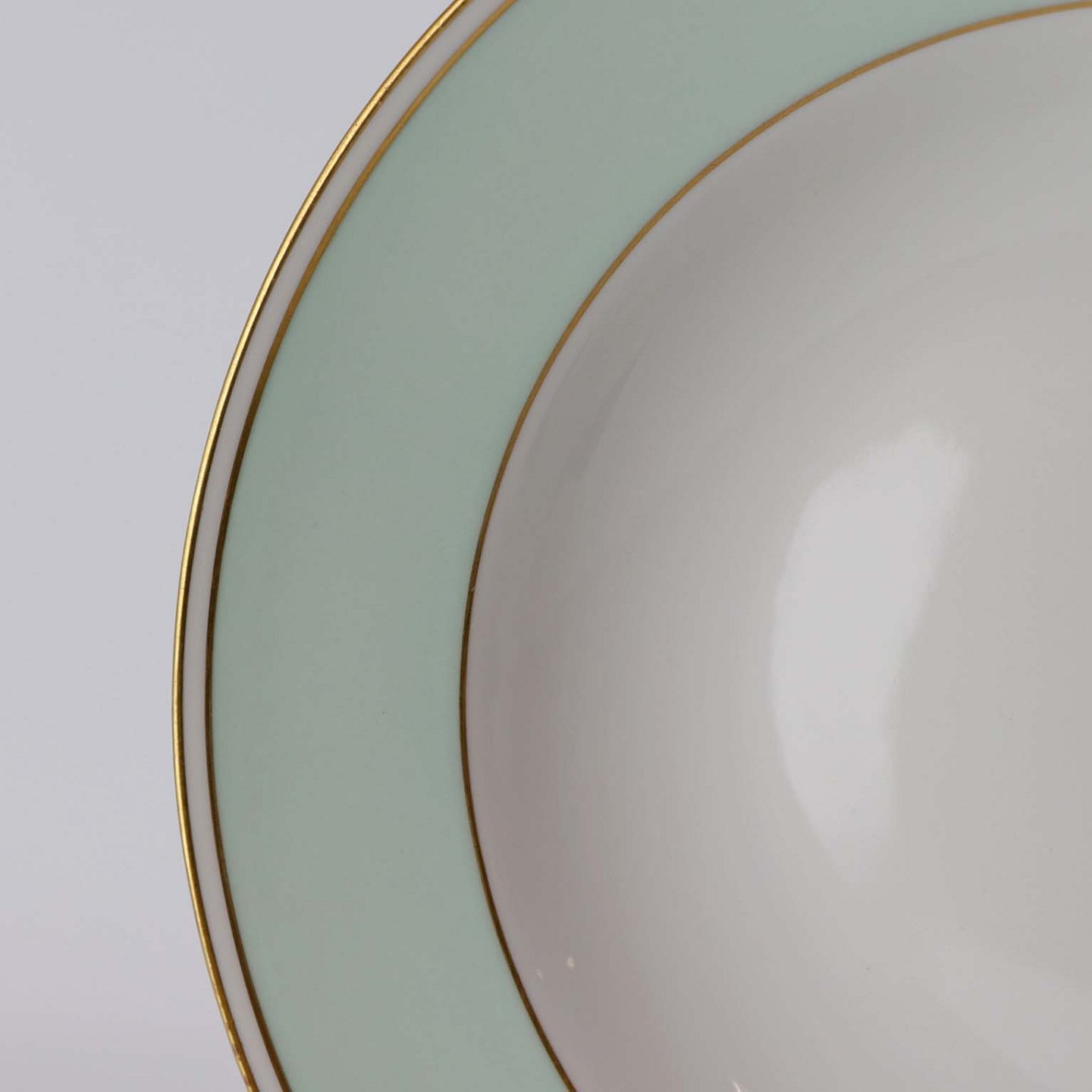 Strauss er af hvidt glaseret porcelæn med et bredt bånd i mintblå, samt enkelte guldlinjer. Lettere brugsspor kan forekomme