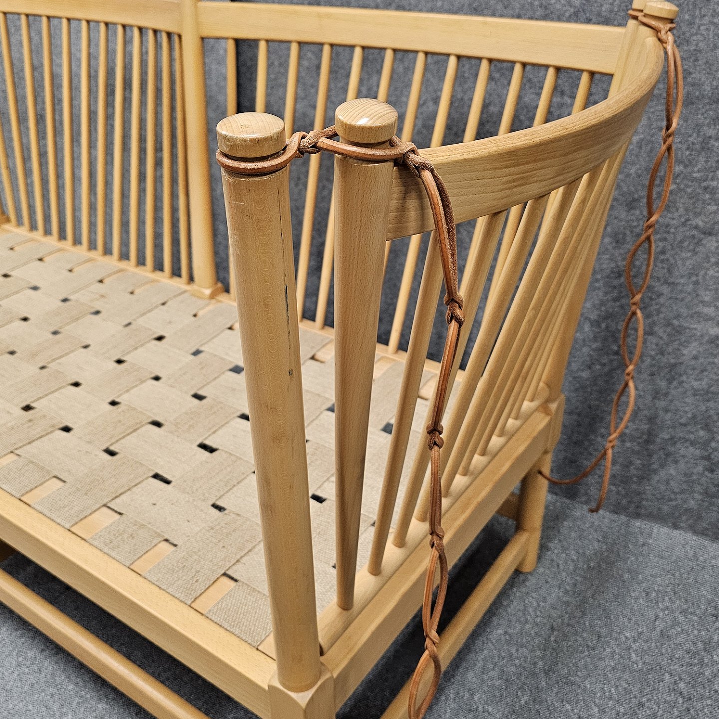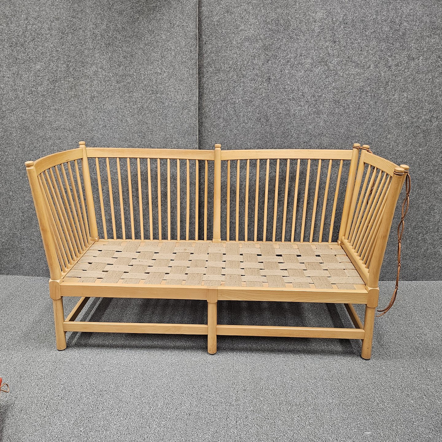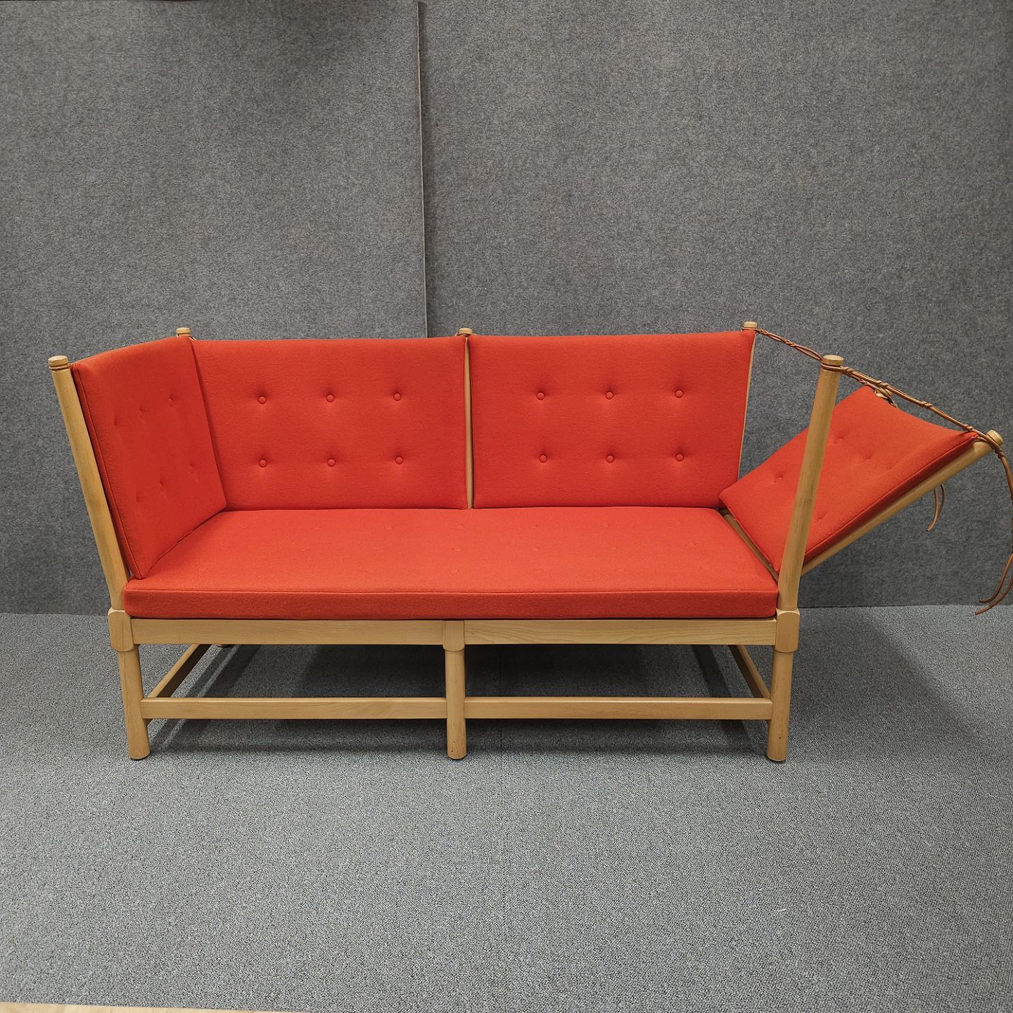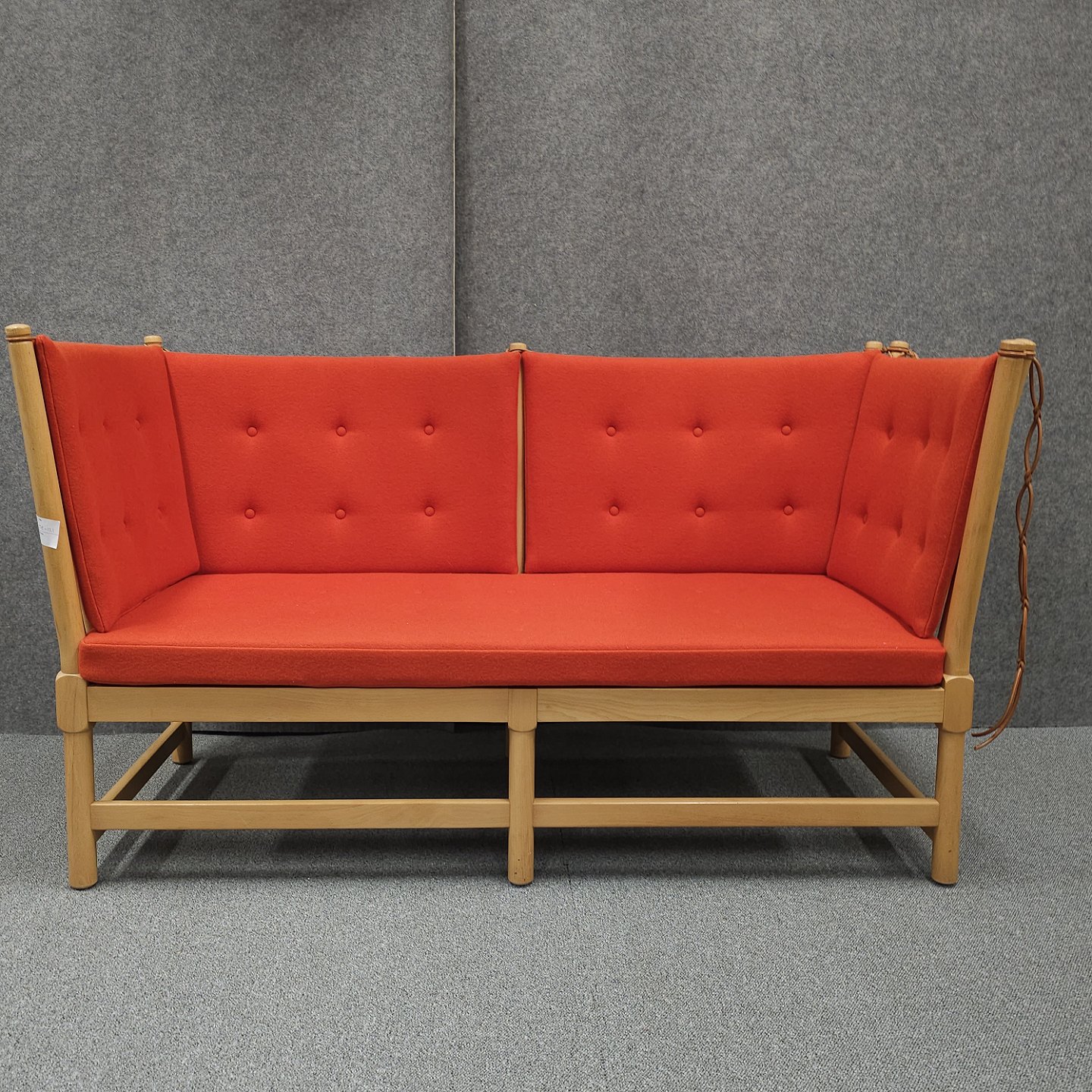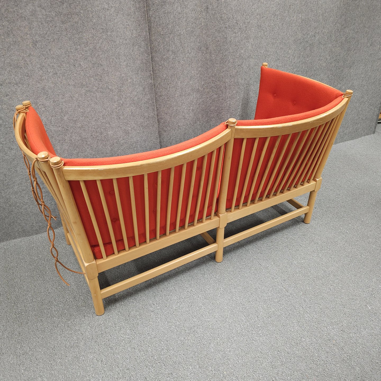 2 personers Tremmesofa af bøg og med hynder i en rød/orange farve. Nr. 08-121