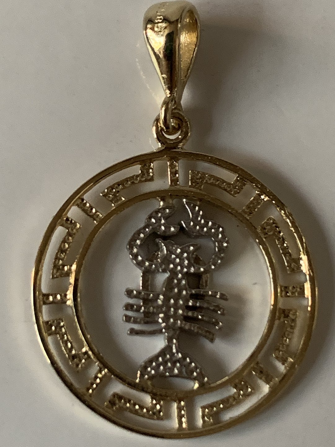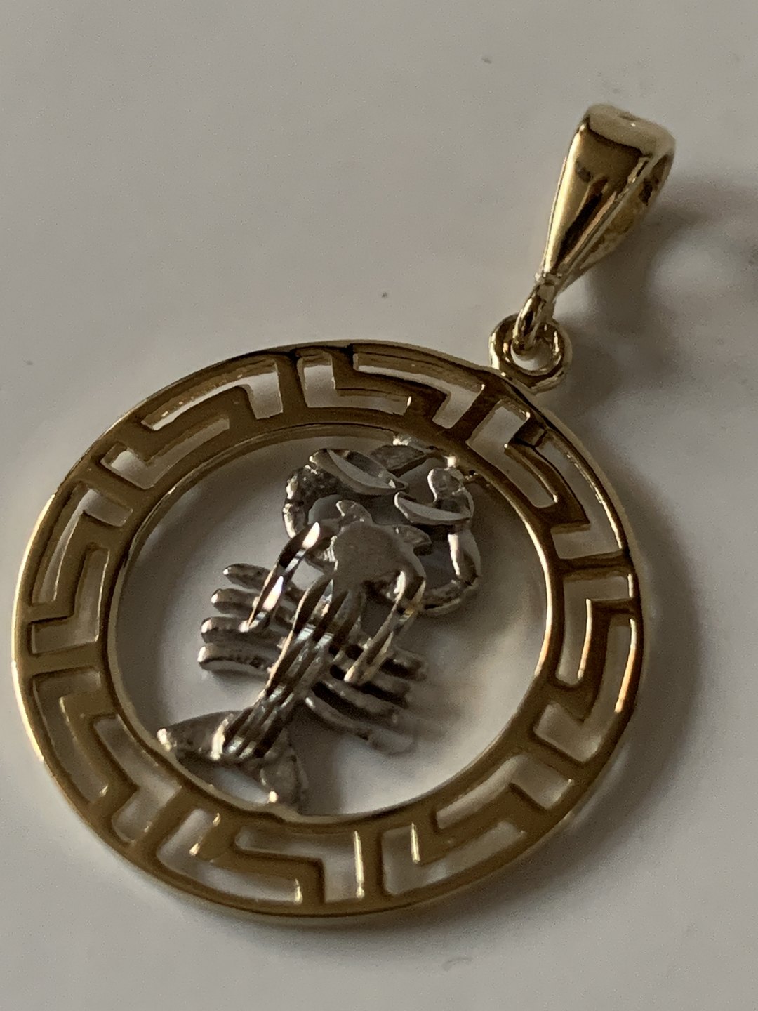 Vedhæng med krebsens stjernetegn i 14 karat rød- og hvidguld, stemplet 585