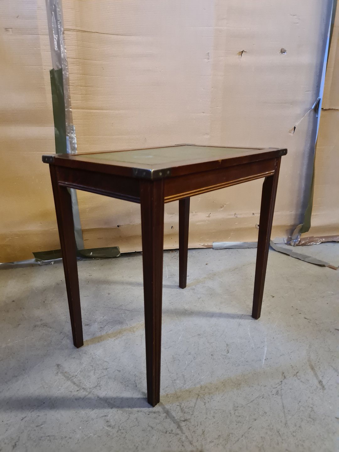 Lampebord i bøgetræ med kunstlæder indlæg, fra 1980erne.