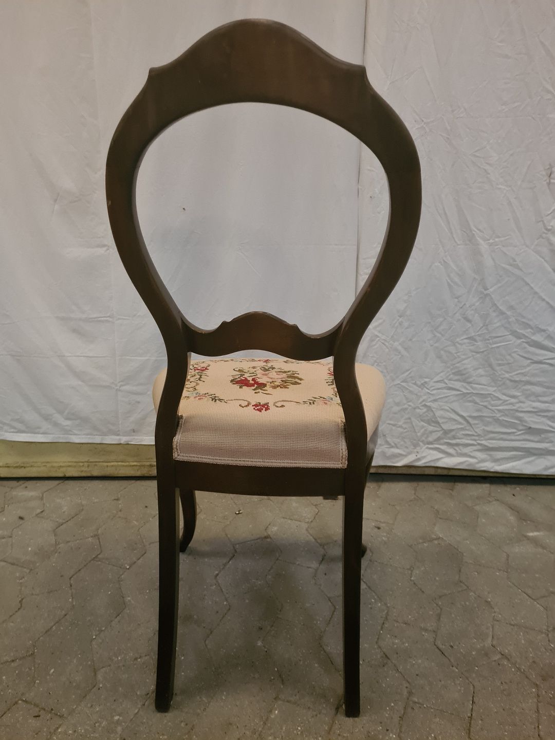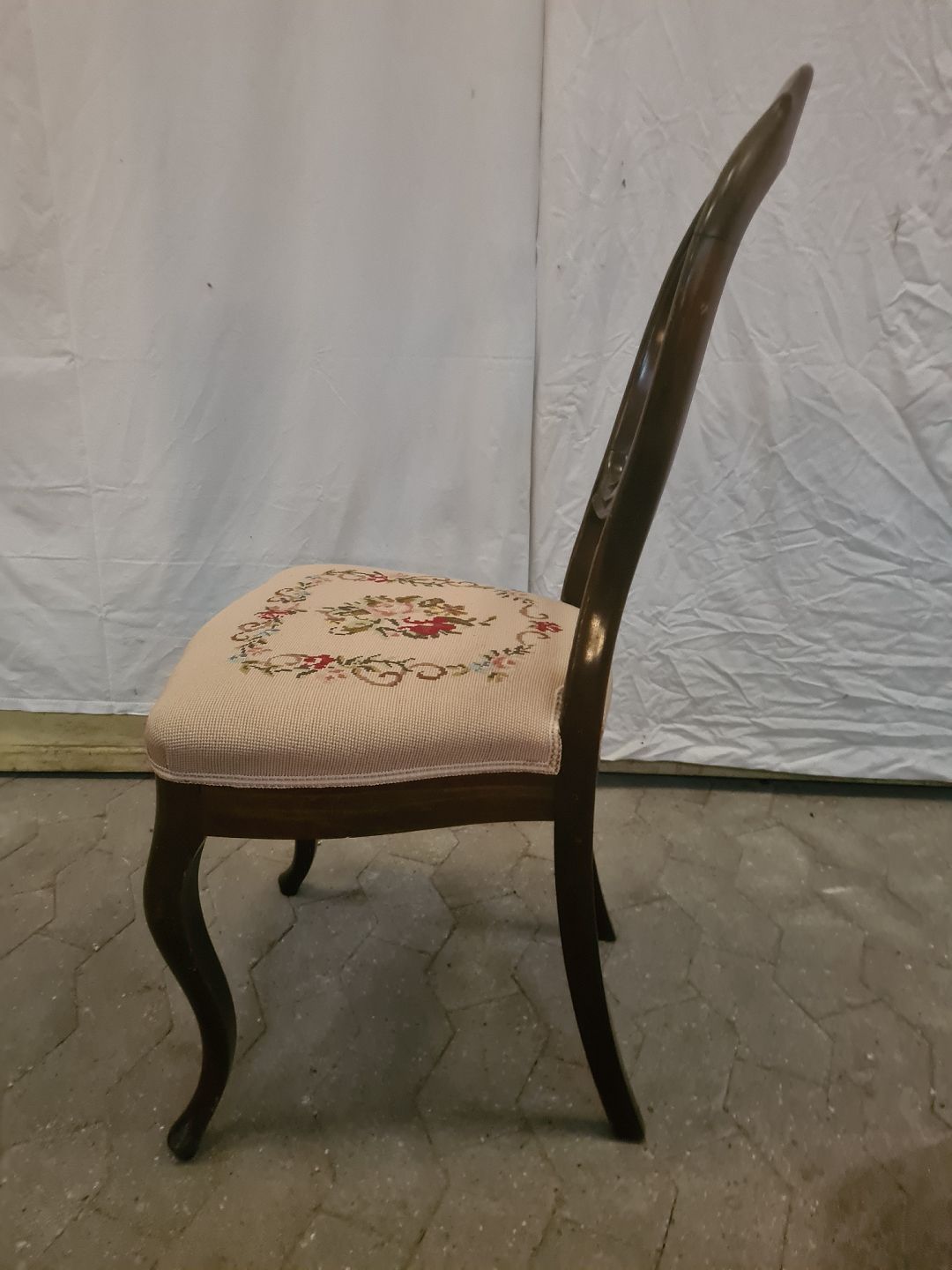 Salonstol i mahogni og bøgetræ med broderet sæde, fra 1910erne.