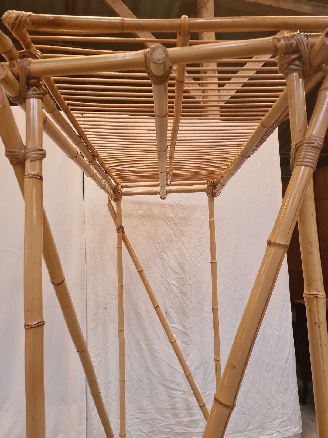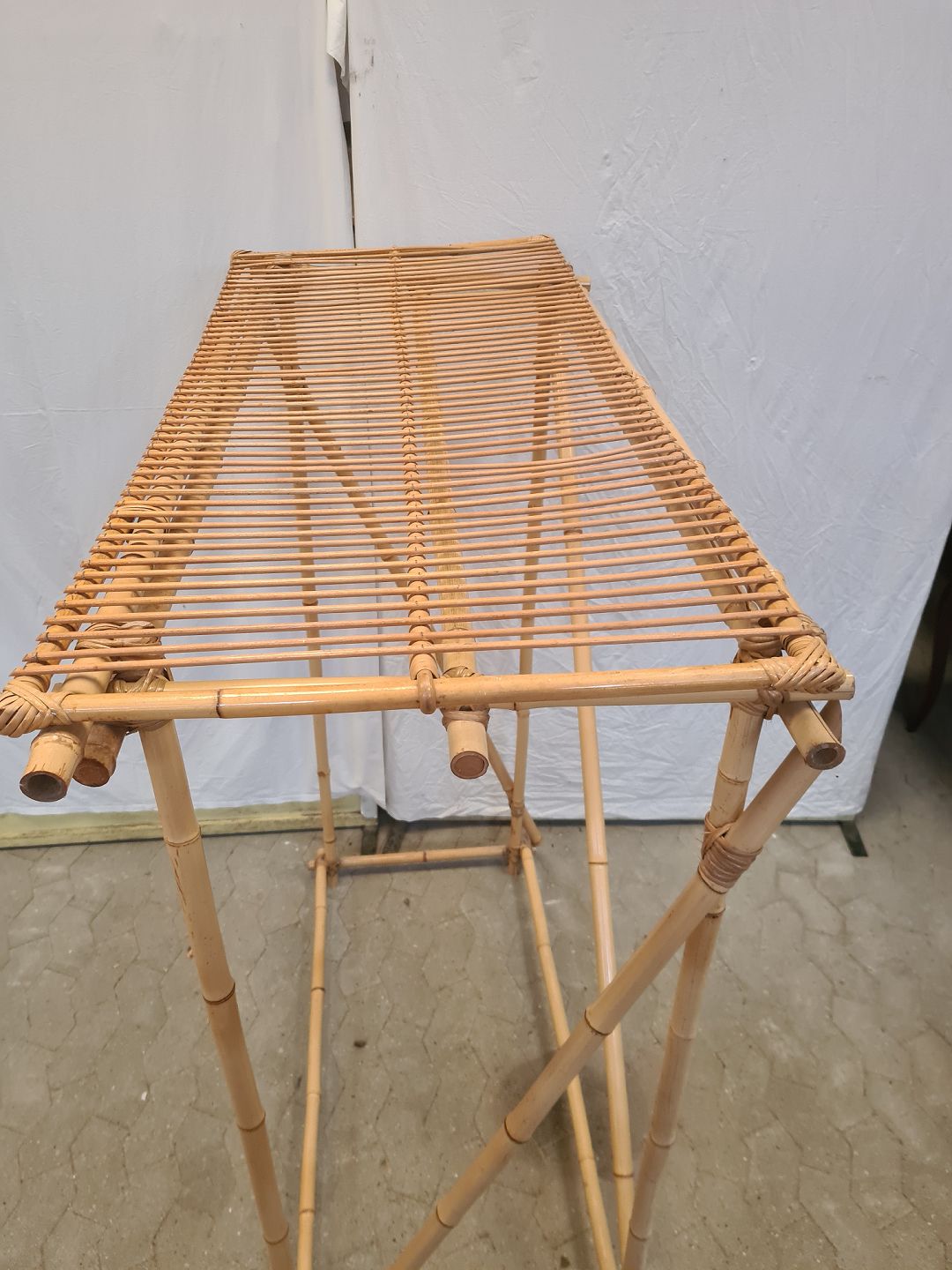 Tøjstativ i bambus til tøjbøjler og med hattehylde, fra 1990erne.