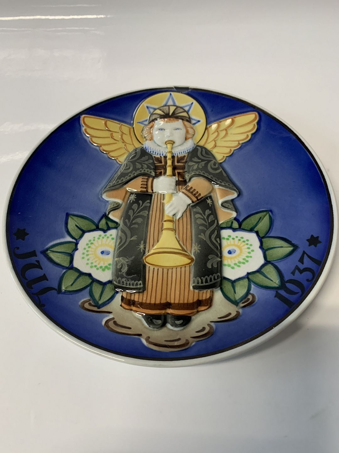 Aluminia juleplatte fra 1937 med motiv i relief.