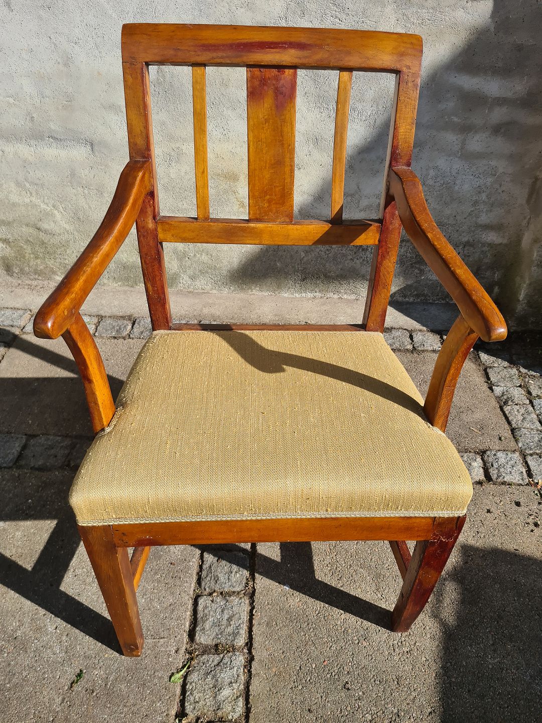 Armstol fra slutningen af 1800 tallet i bejdset fyr. Fremstår meget pæn og velholdt for alderen uden de store brugsspor.