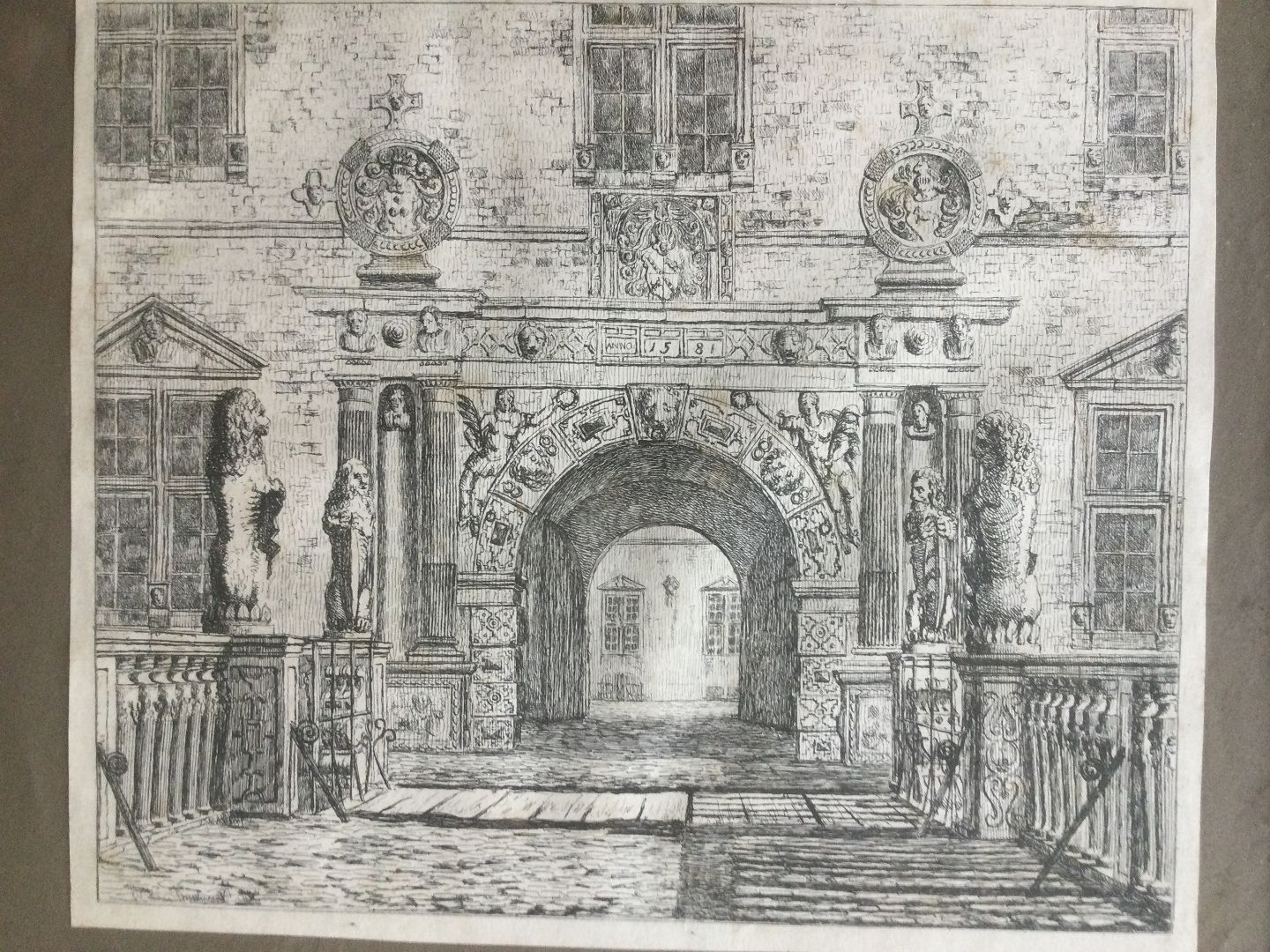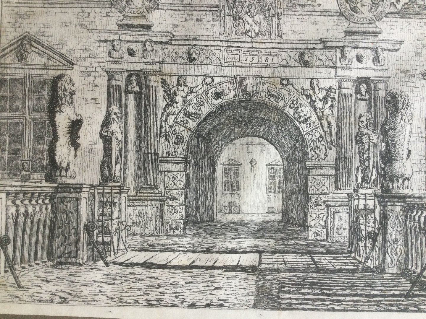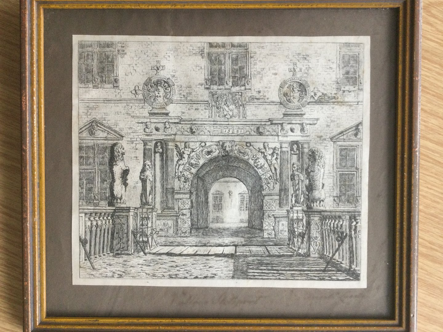 Radering af Thorald Læssøe - Indgangsportalen på Vallø Slot 1839.