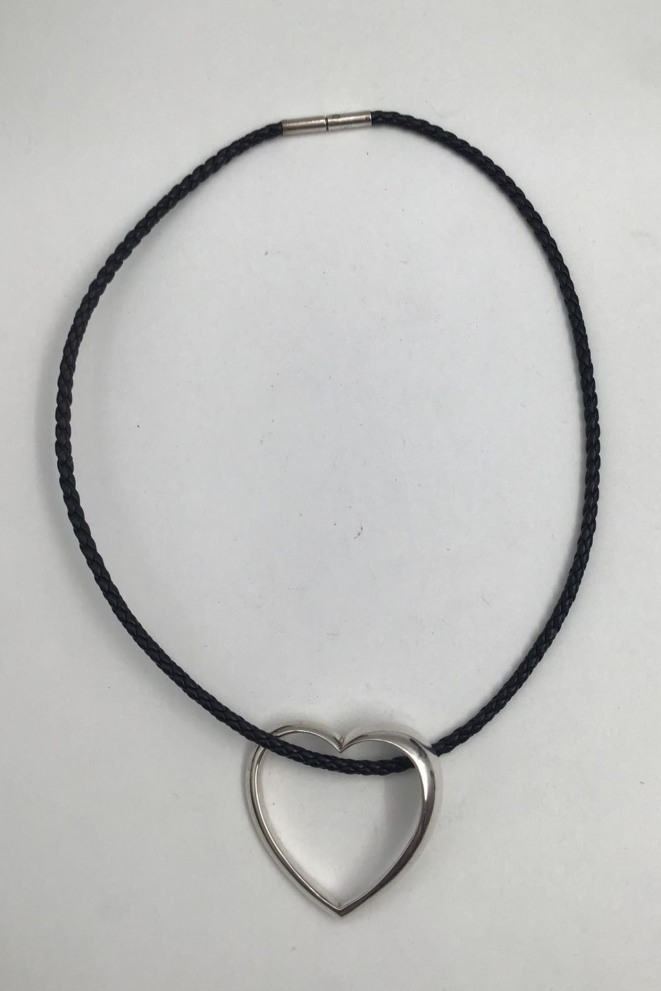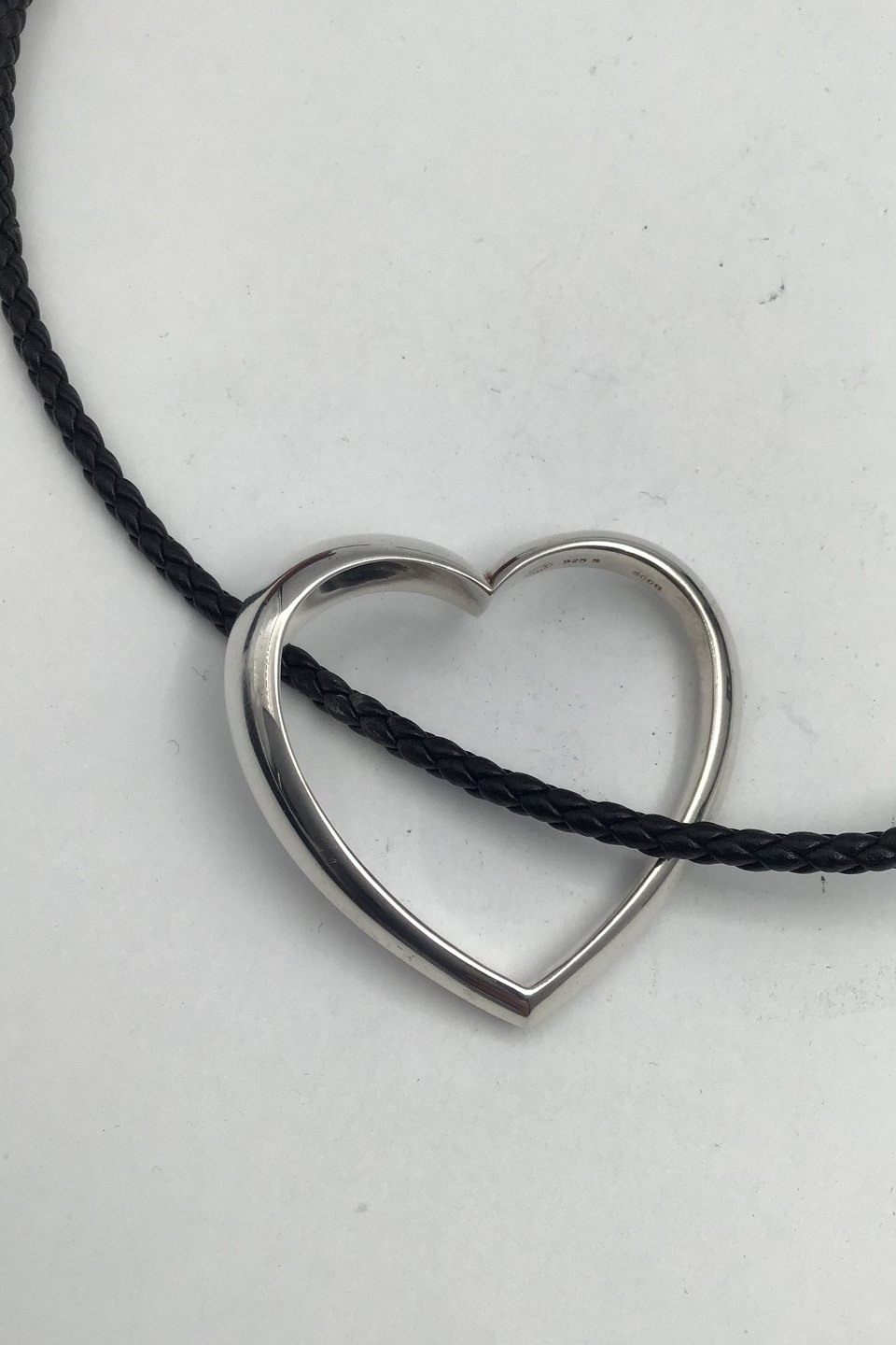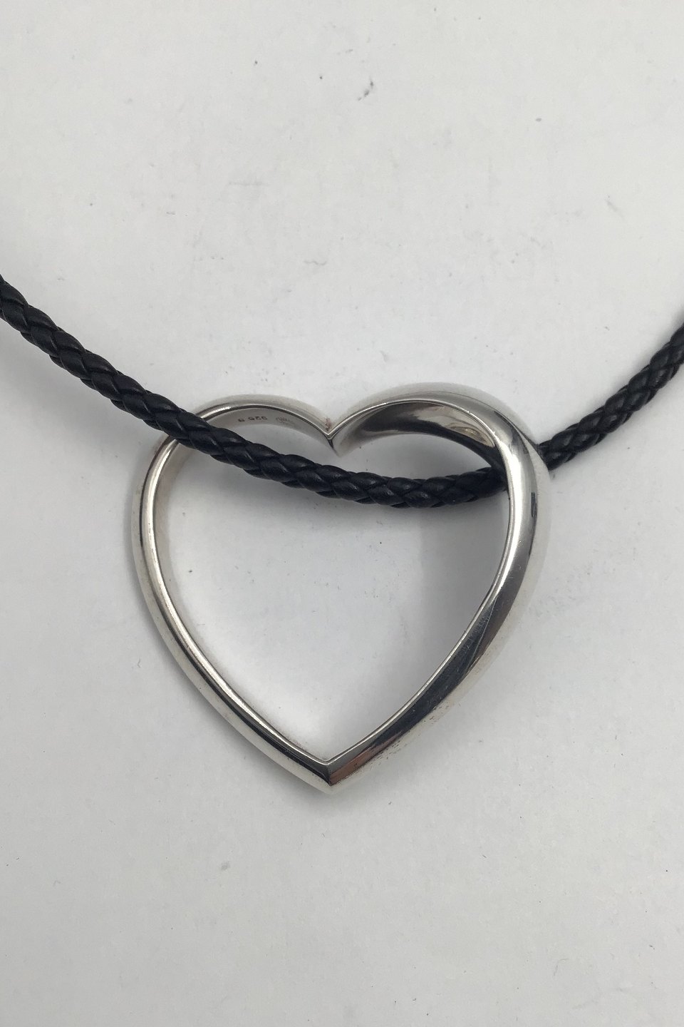 Georg Jensen Sterling Sølv Hjertevedhæng No. 600B og flettet lædersnor