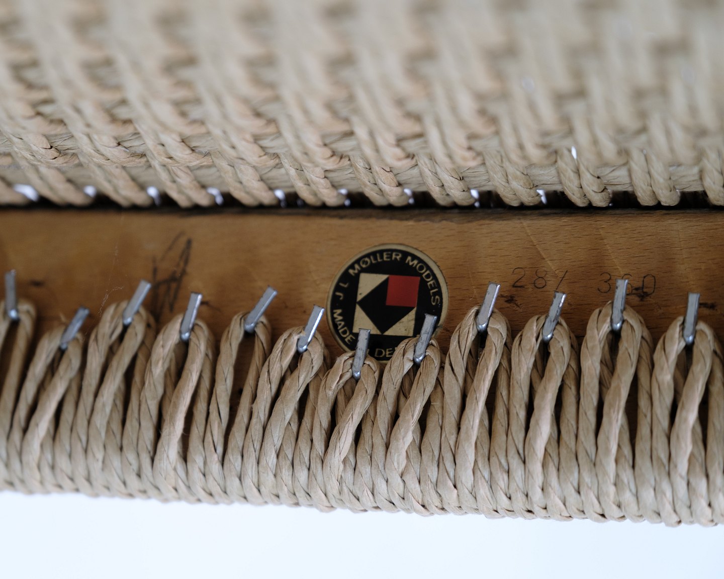 Niels Otto Møller (1920-1982) was a Danish designer and cabinet maker who founded J.L. Møllers Møbelfabrik in 1944. His designs are known for their focus on quality and craftsmanship, and especially his dining table chairs, such as model 78, have been recognized internationally for their elegance and use of natural materials such as rosewood and teak. Møller's furniture remains popular today and is considered an important part of Danish design heritage.