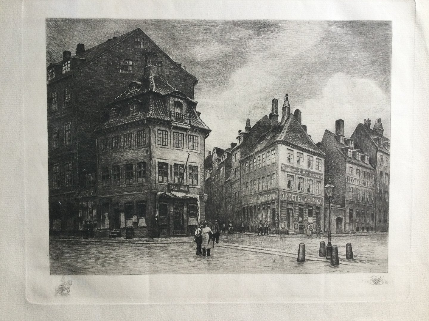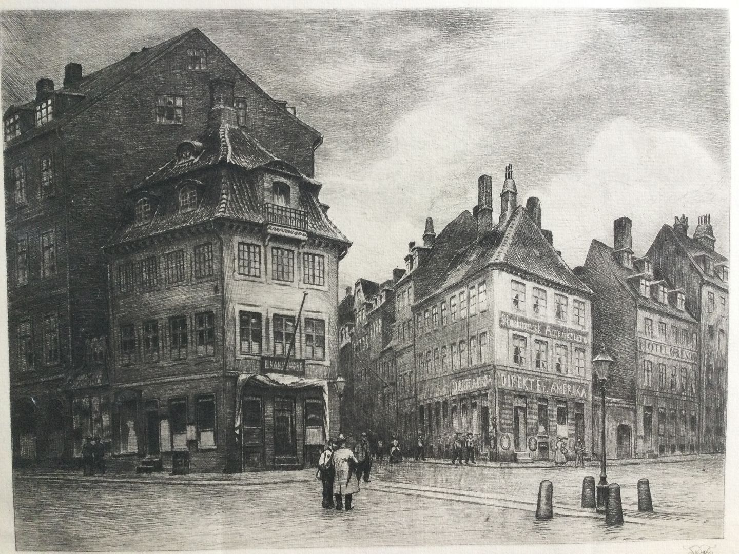 Radering af Peter Tom-Petersen - Kanneworffs Hus på Kongens Nytorv i København, 1902.