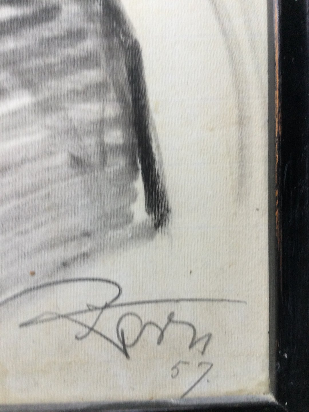 Text available in Danish: Tegning af H.J. Korn 1957 - Portræt af mand.