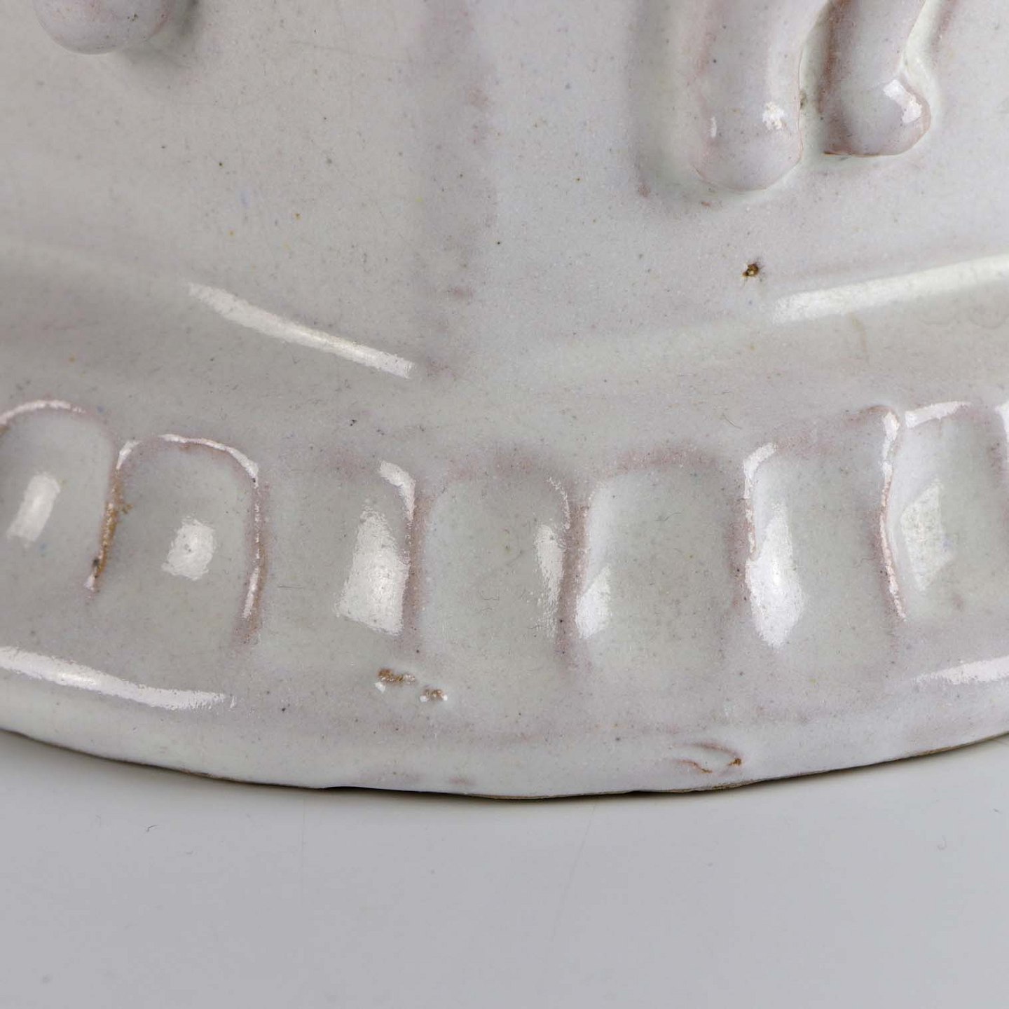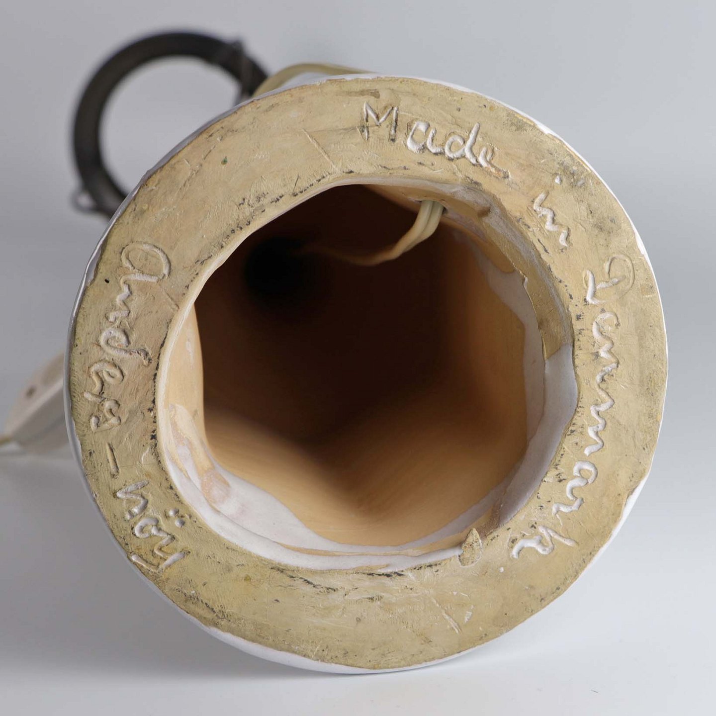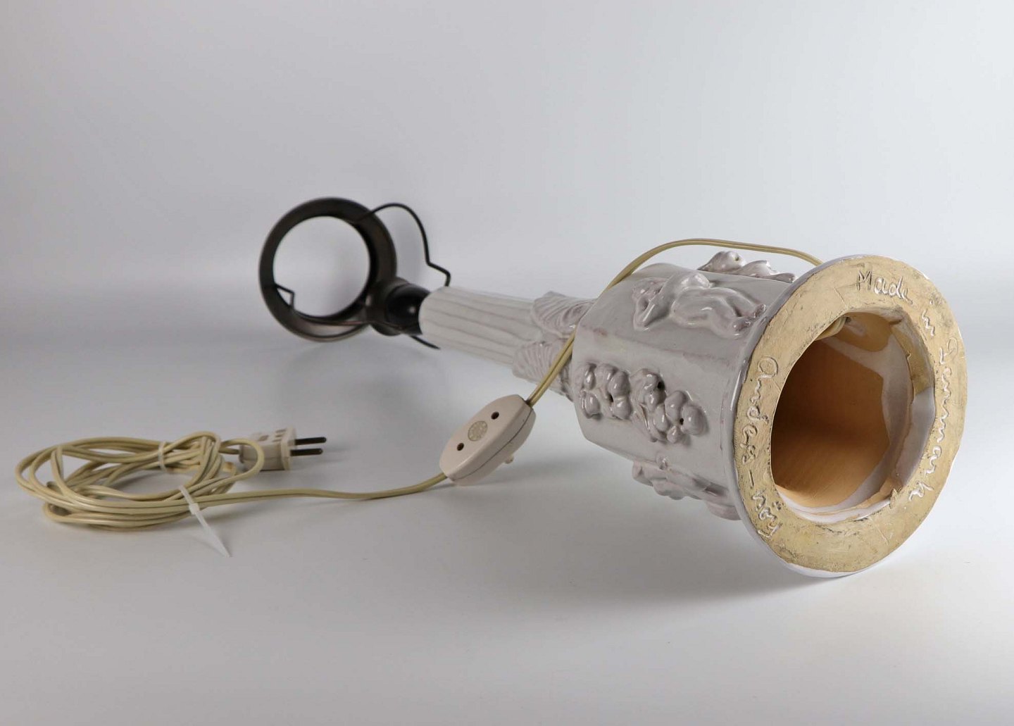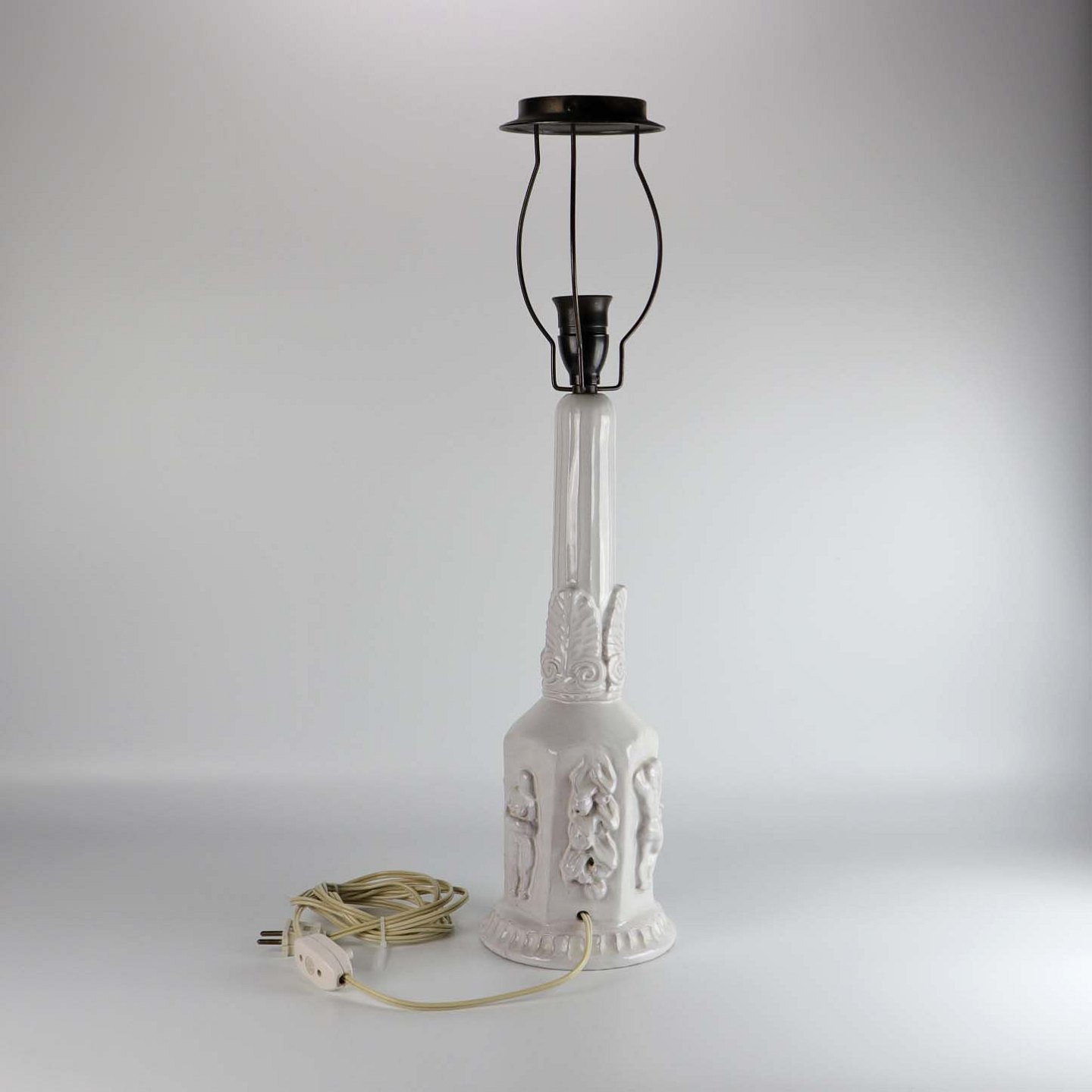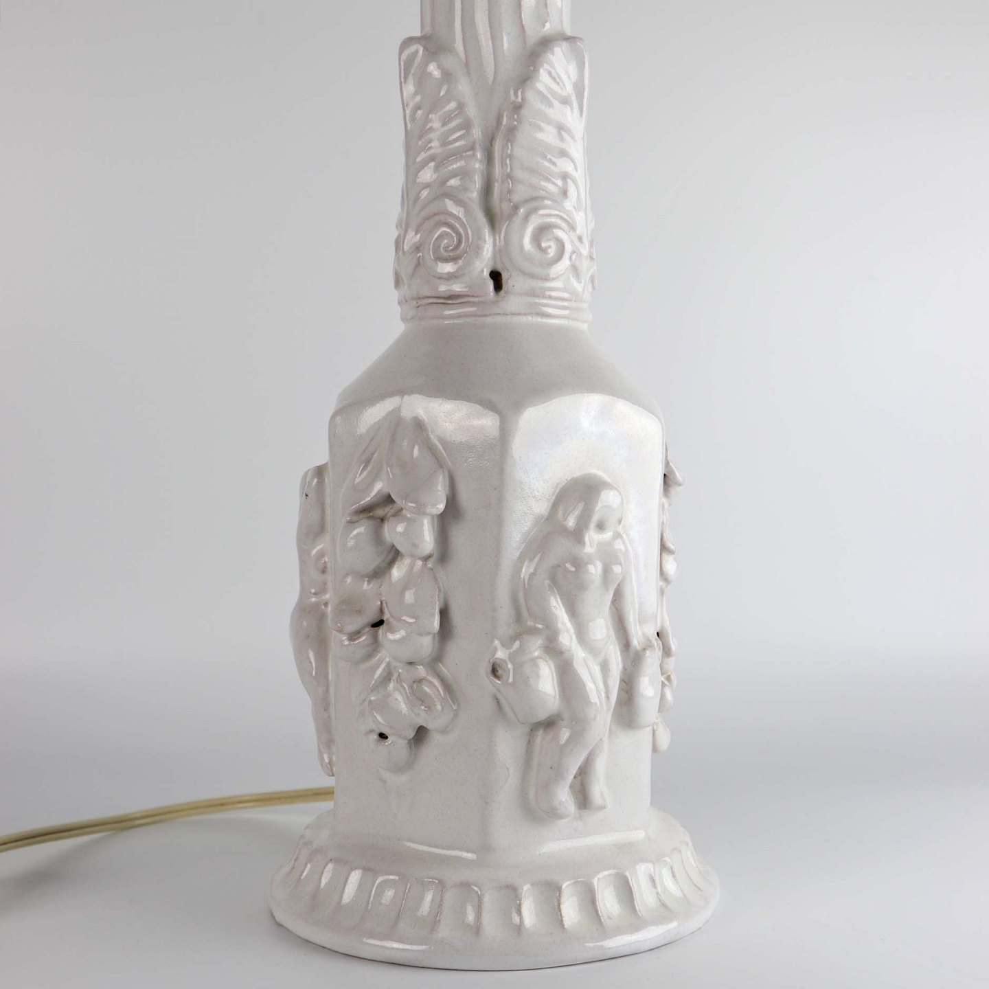 Lampefod i hvid glaseret keramik med motiv af kvinder, klaser og blade