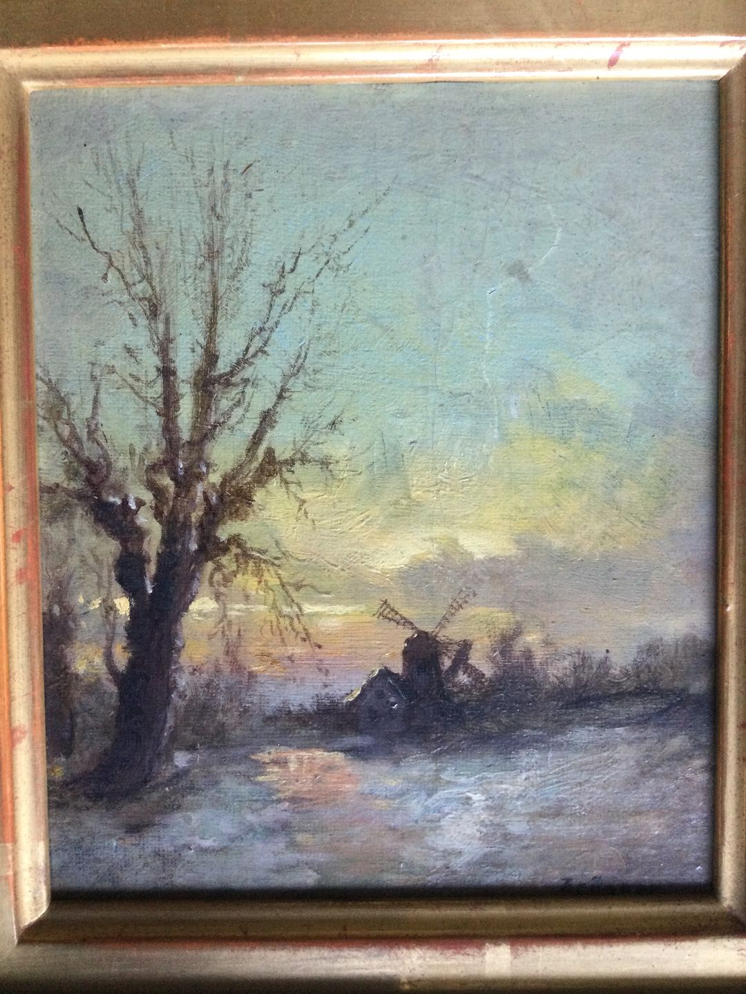 Maleri af Cölestin Brügner - Hollandsk vinterparti med mřlle.