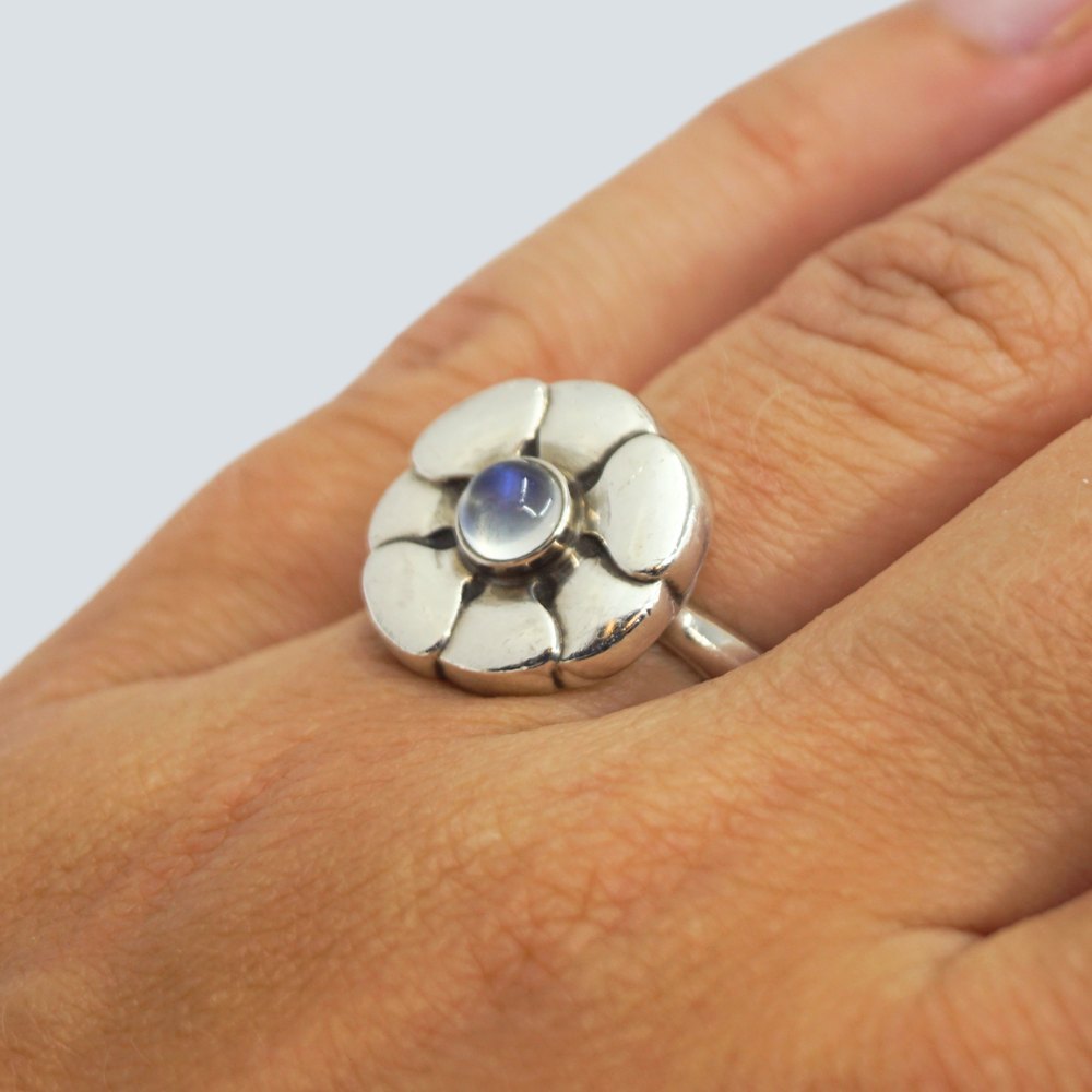 Georg Jensen; Ring af sterling sølv prydet med månesten.