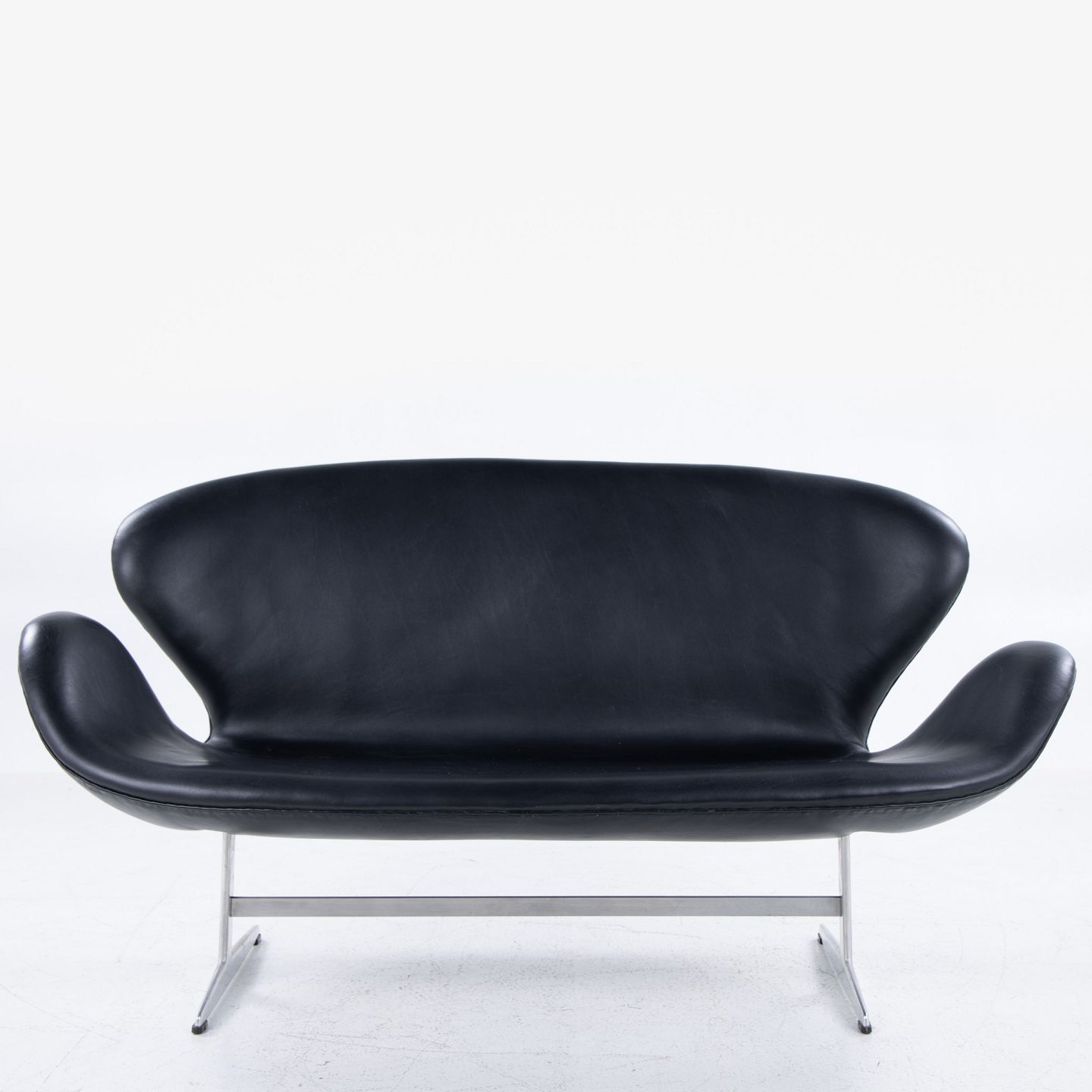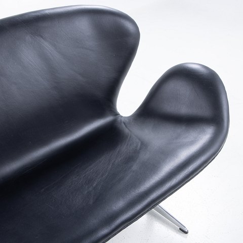 AJ 3321 - ‘Swan sofa’ in black leather with steel frame.
