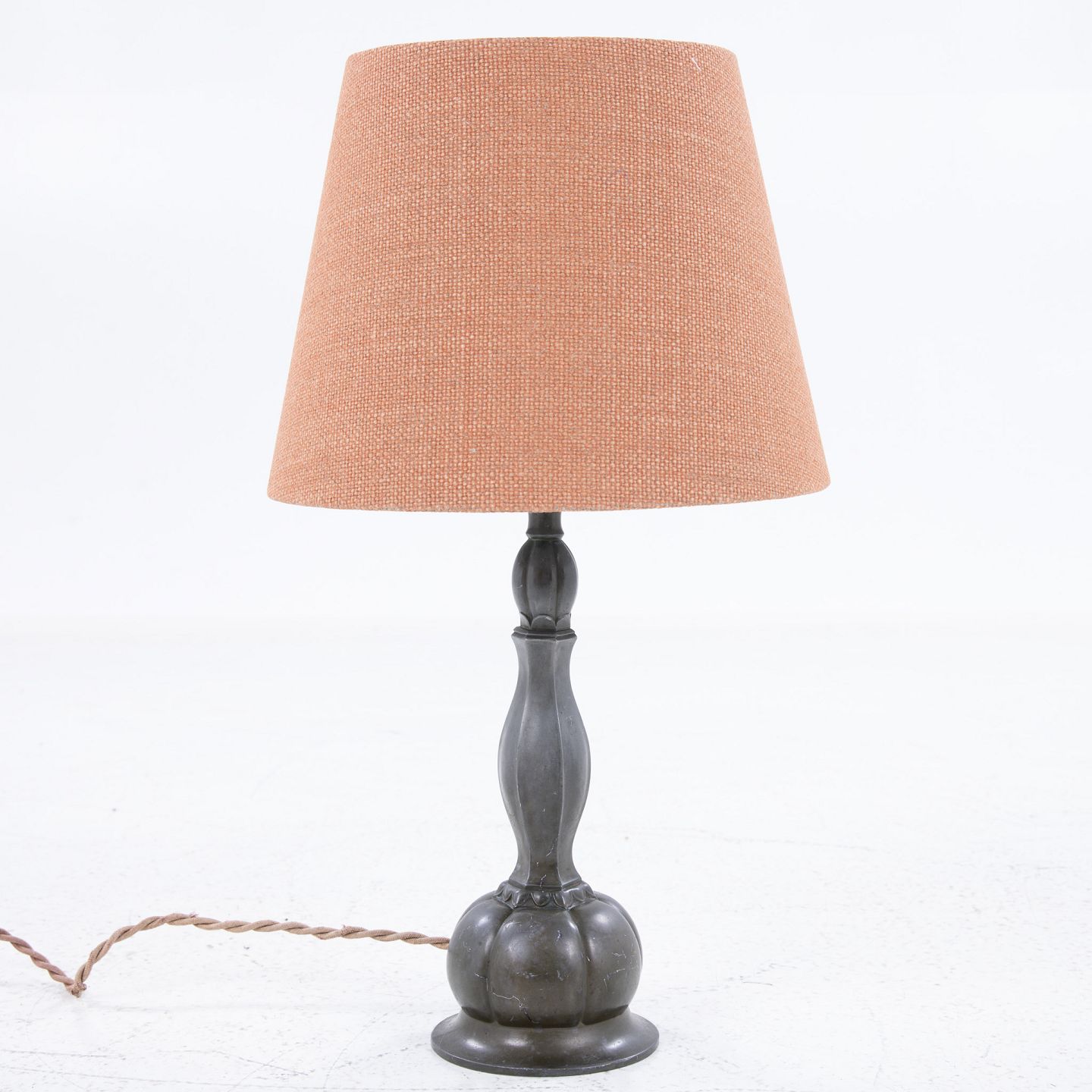Table lamp in disco metal w. bordeaux lamp shade.