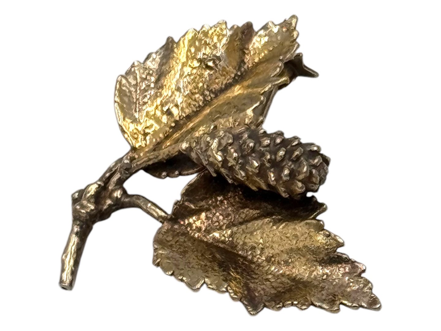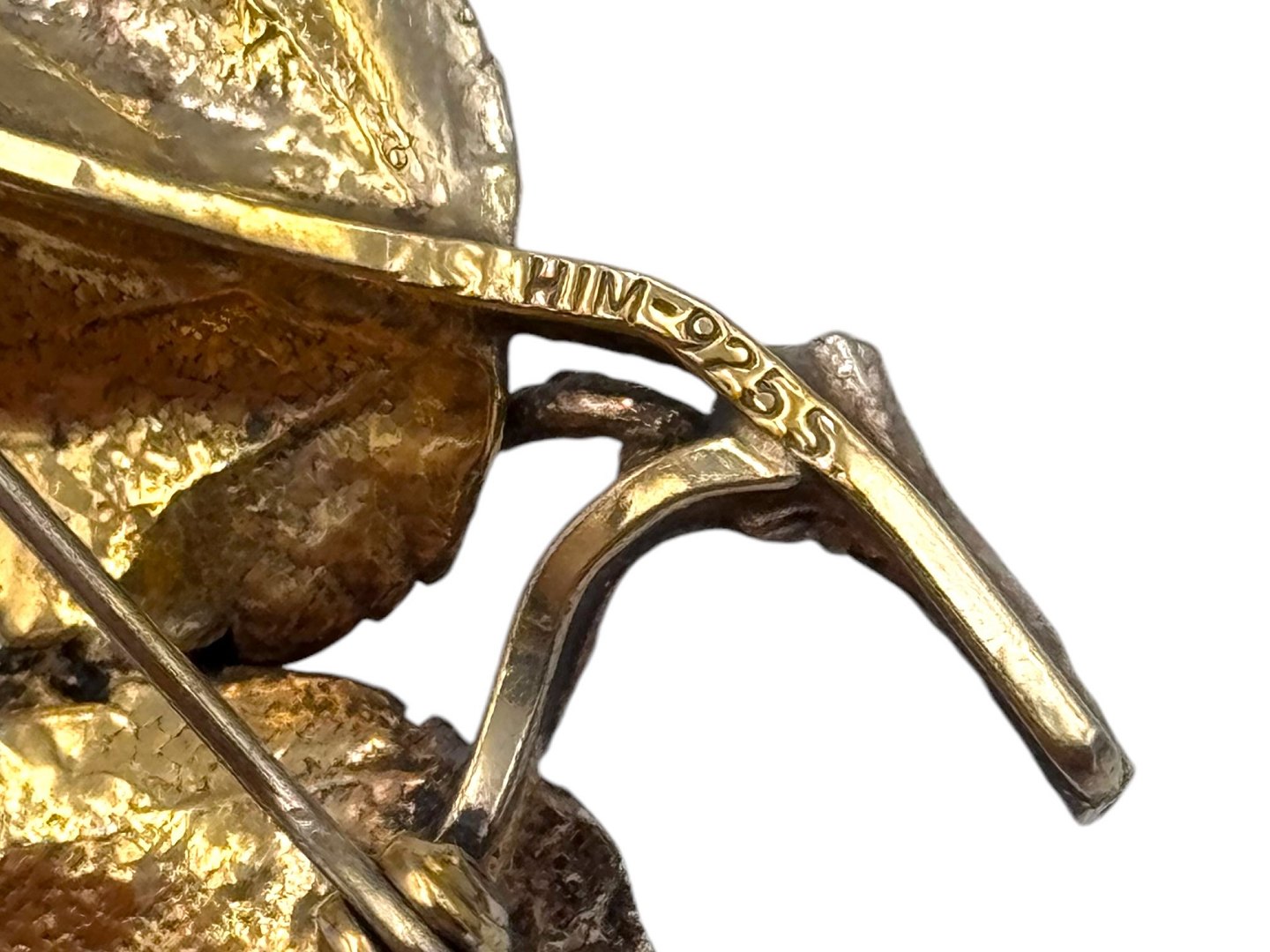 Flora Danica broche i forgyldt sterlingsølv - Kraftig kvalitet