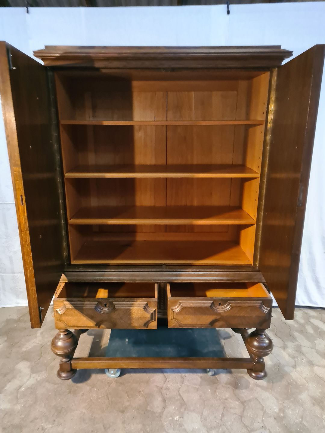 Skab i rænessance stil i fineret og massivt egetræ, fra 1930erne.