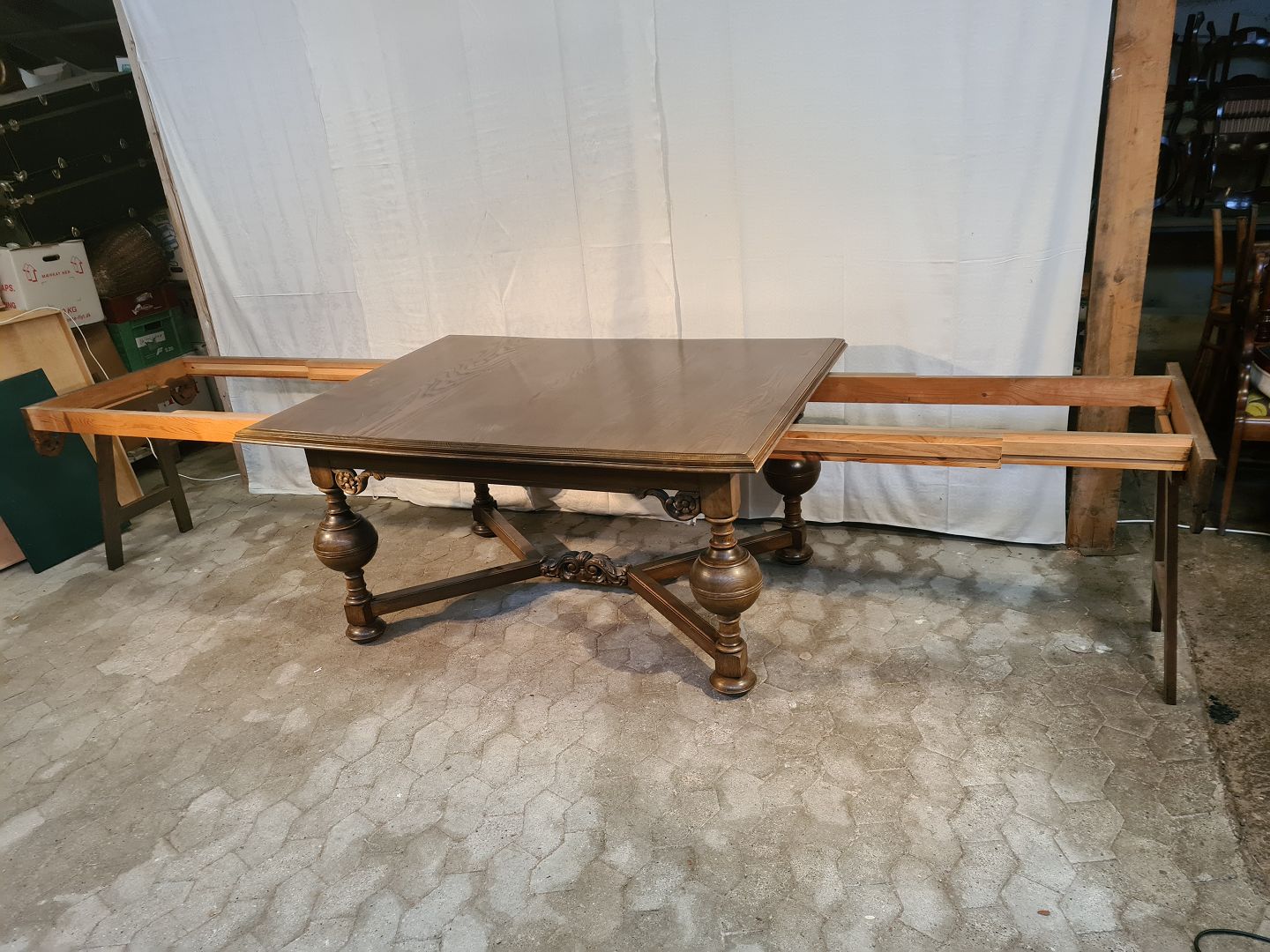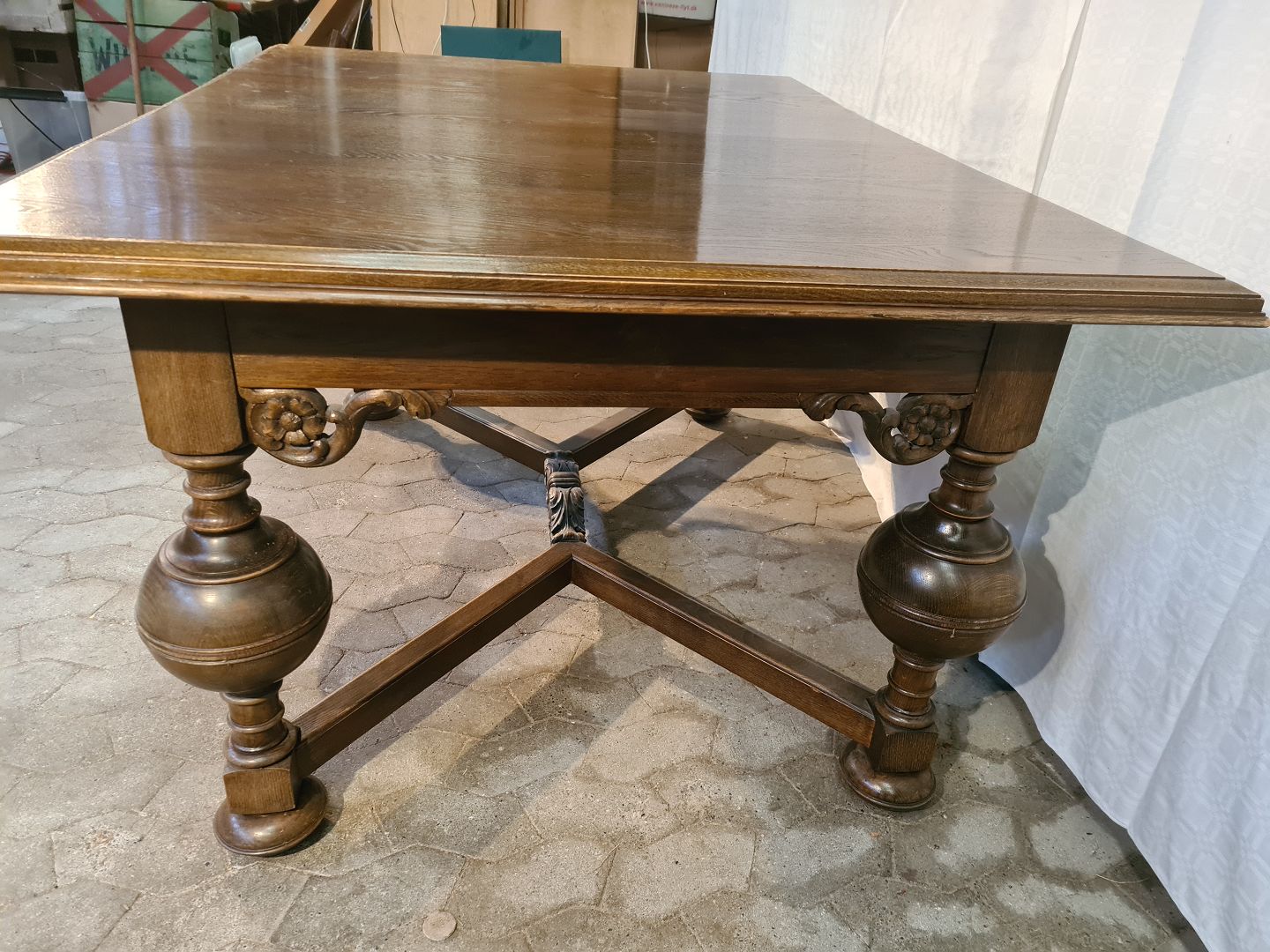 Bord i rænessance stil i fineret og massivt egetræ, fra 1930erne.