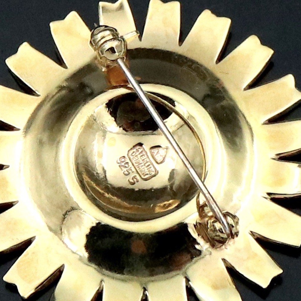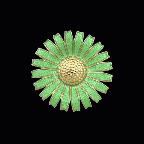 A. Michelsen Marguerit / Daisy Broche i forgyldt sterling sølv med grøn emalje - 43mm.