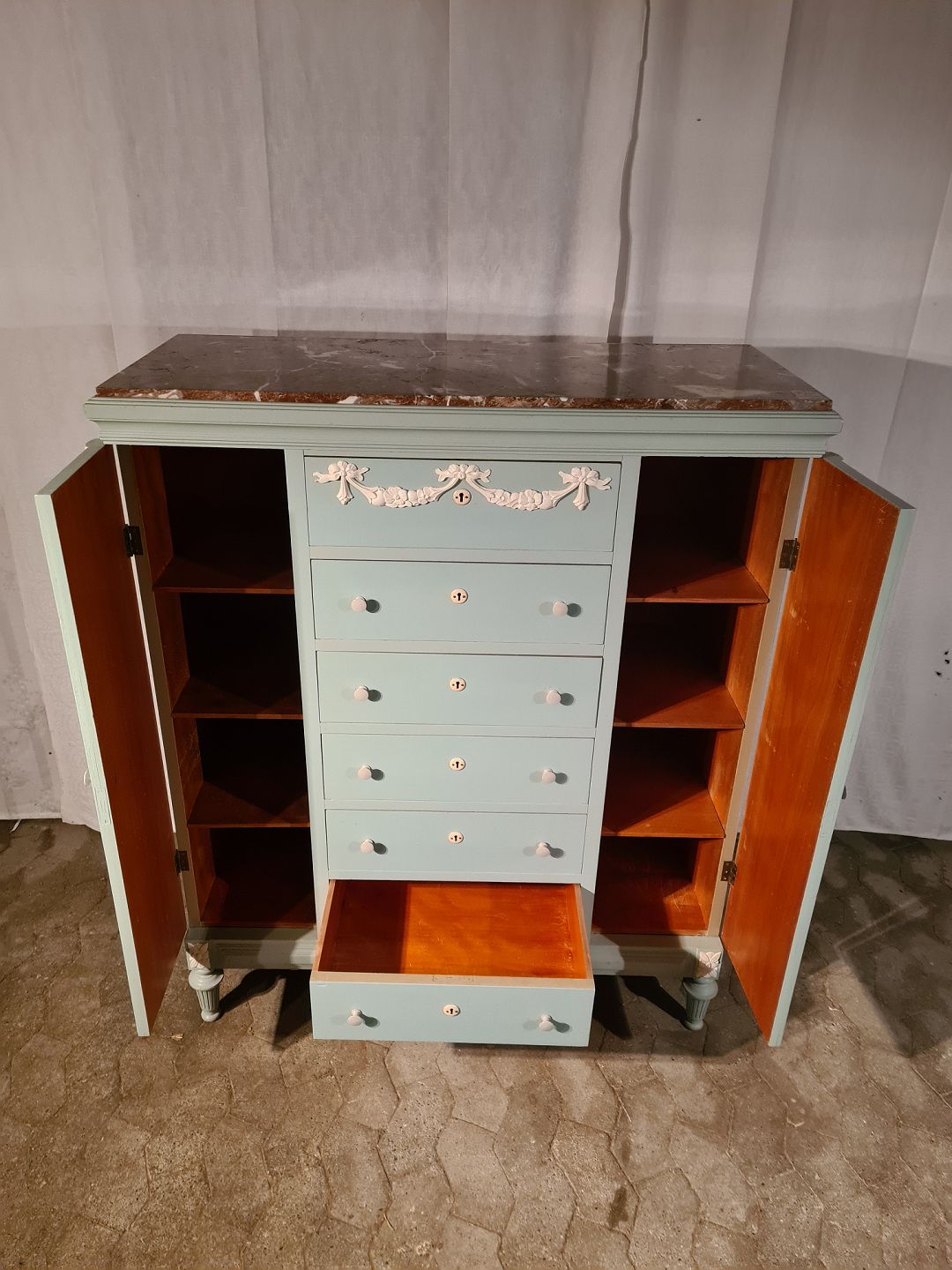 Malet skab med marmorplade, fra 1920erne.