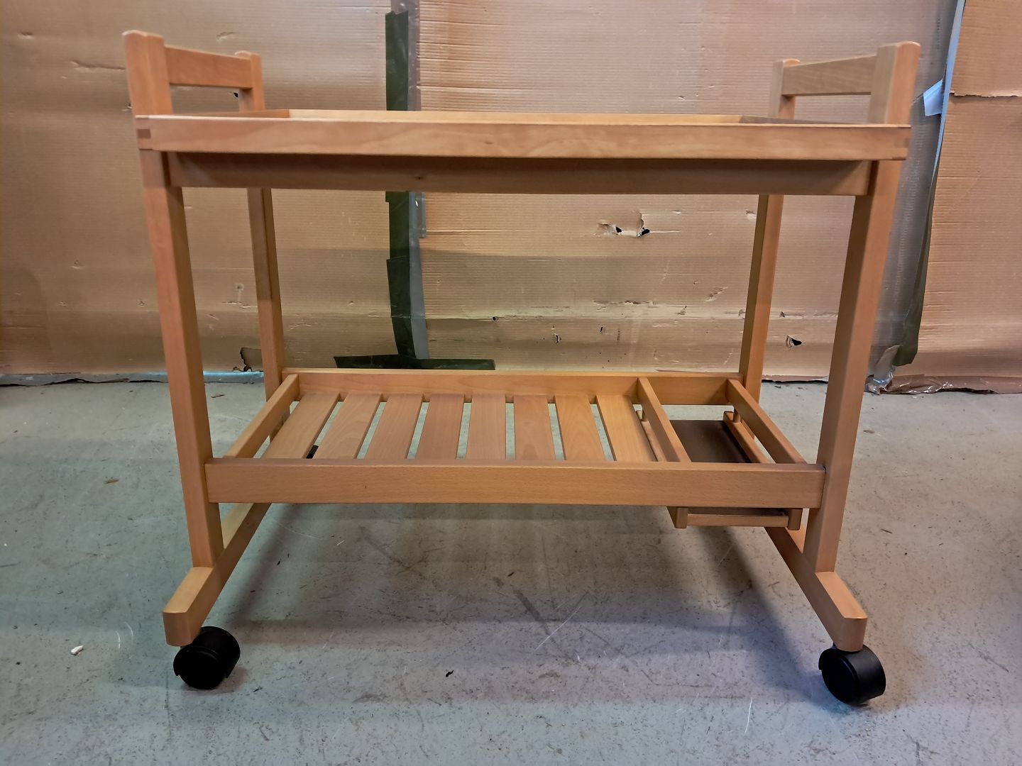 Rullebord i massivt bøgetræ med linoleumsplade, fra 1990erne.