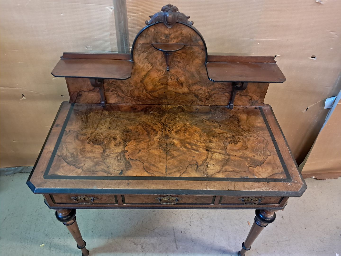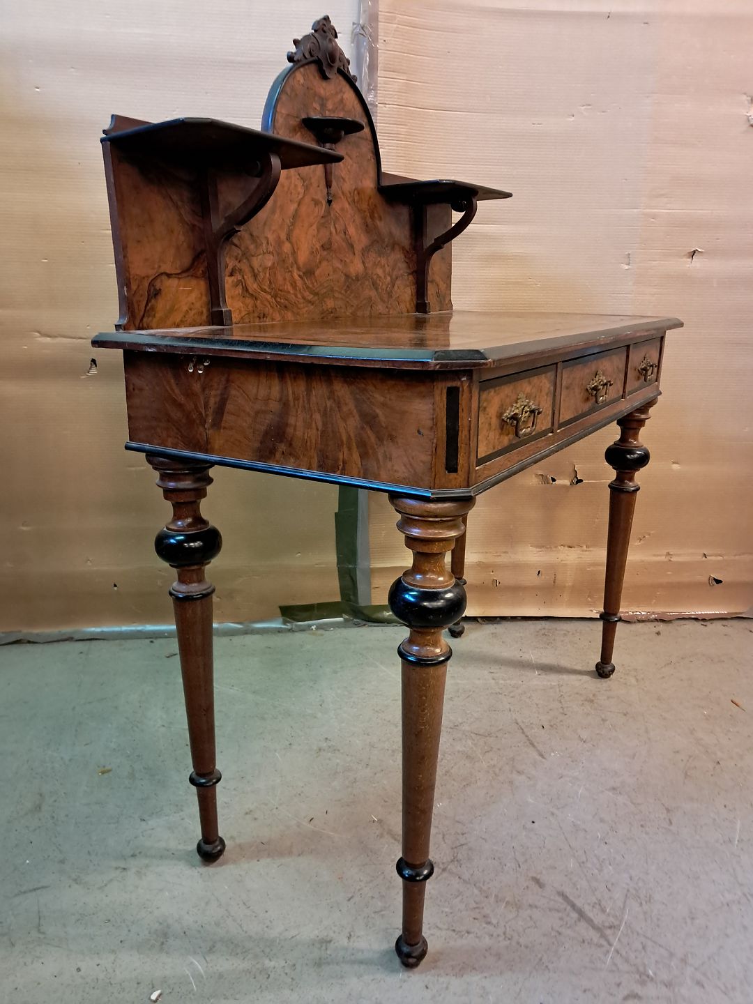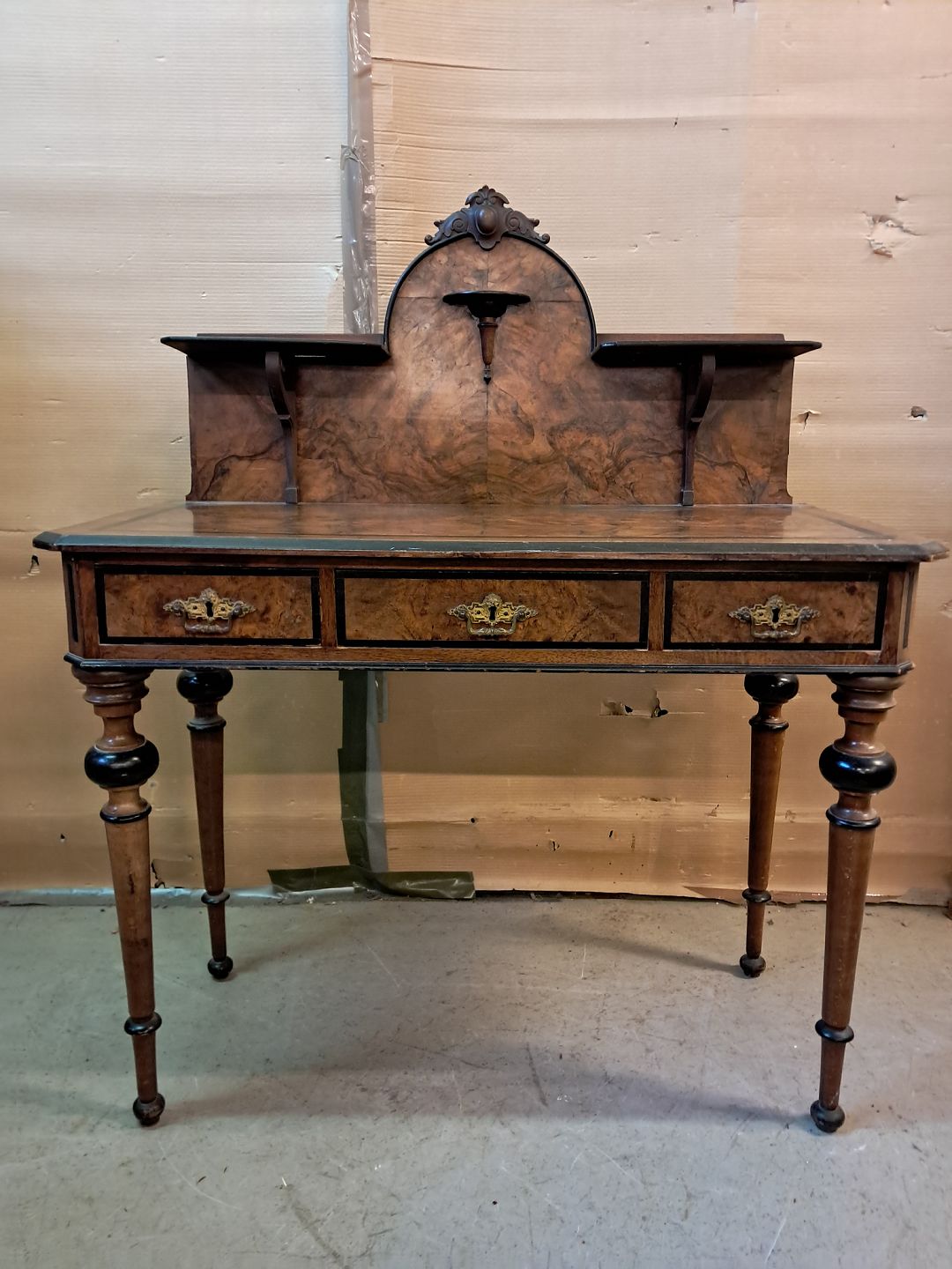 Dame skrivebord i fineret mahogni og bøgetræ, fra 1900erne.