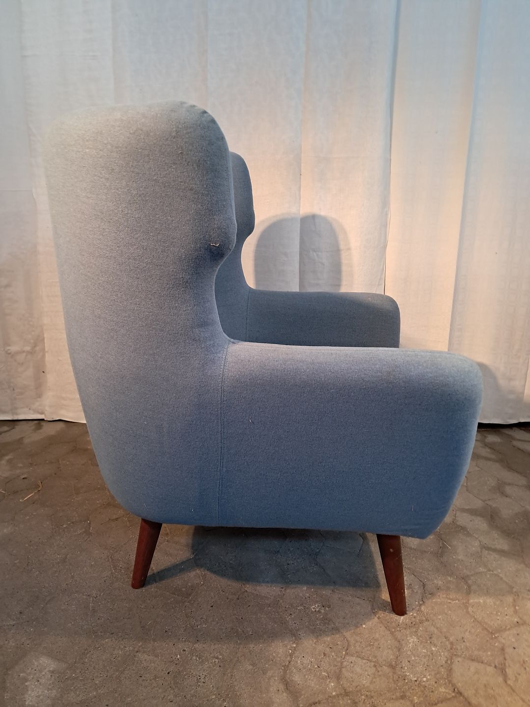 Lænestol med fodskammel i stofbetræk, fra 2010erne.