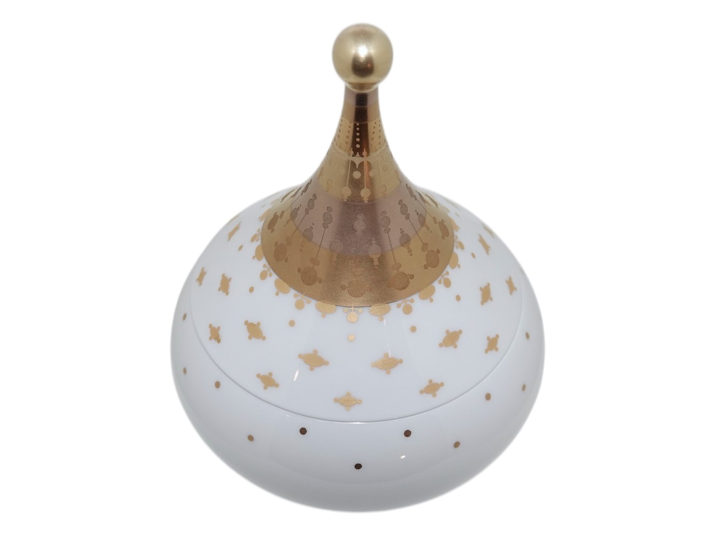 Rosenthal studio-line Quatre Couleurs, løgformet lågkrukke med gulddekoration.
