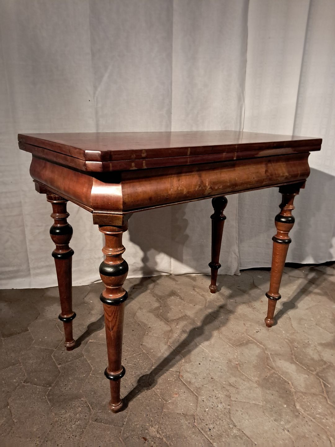 Spillebord i fineret og massivt mahogni og bøgetræ, fra 1900erne.