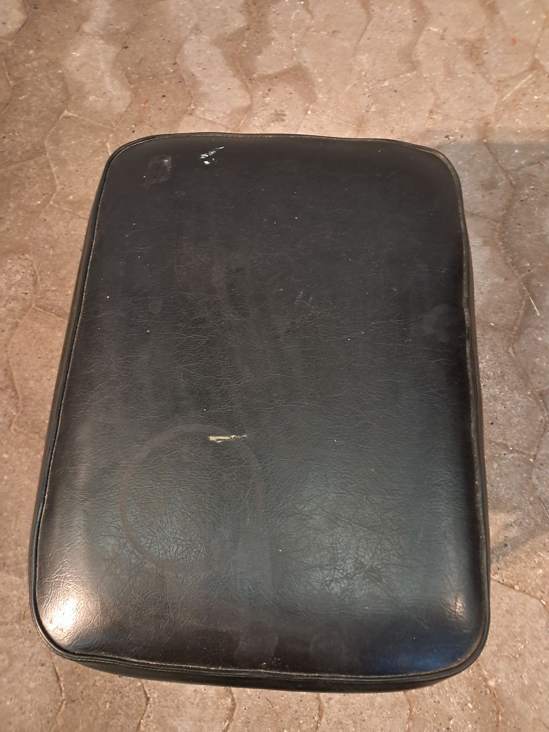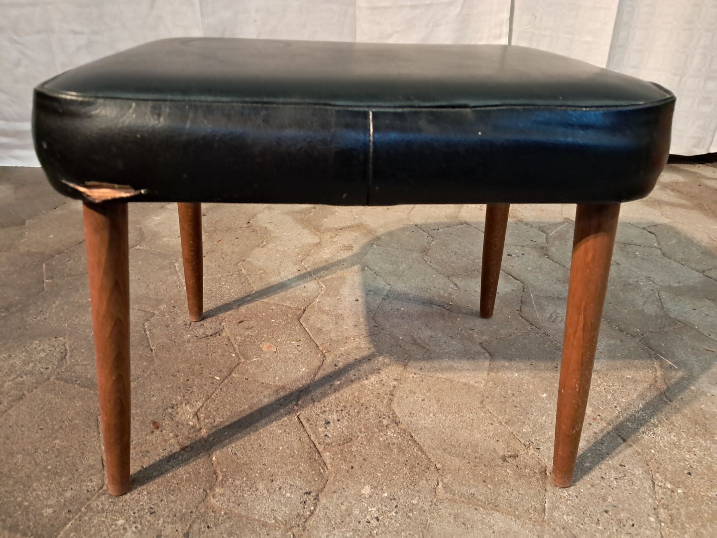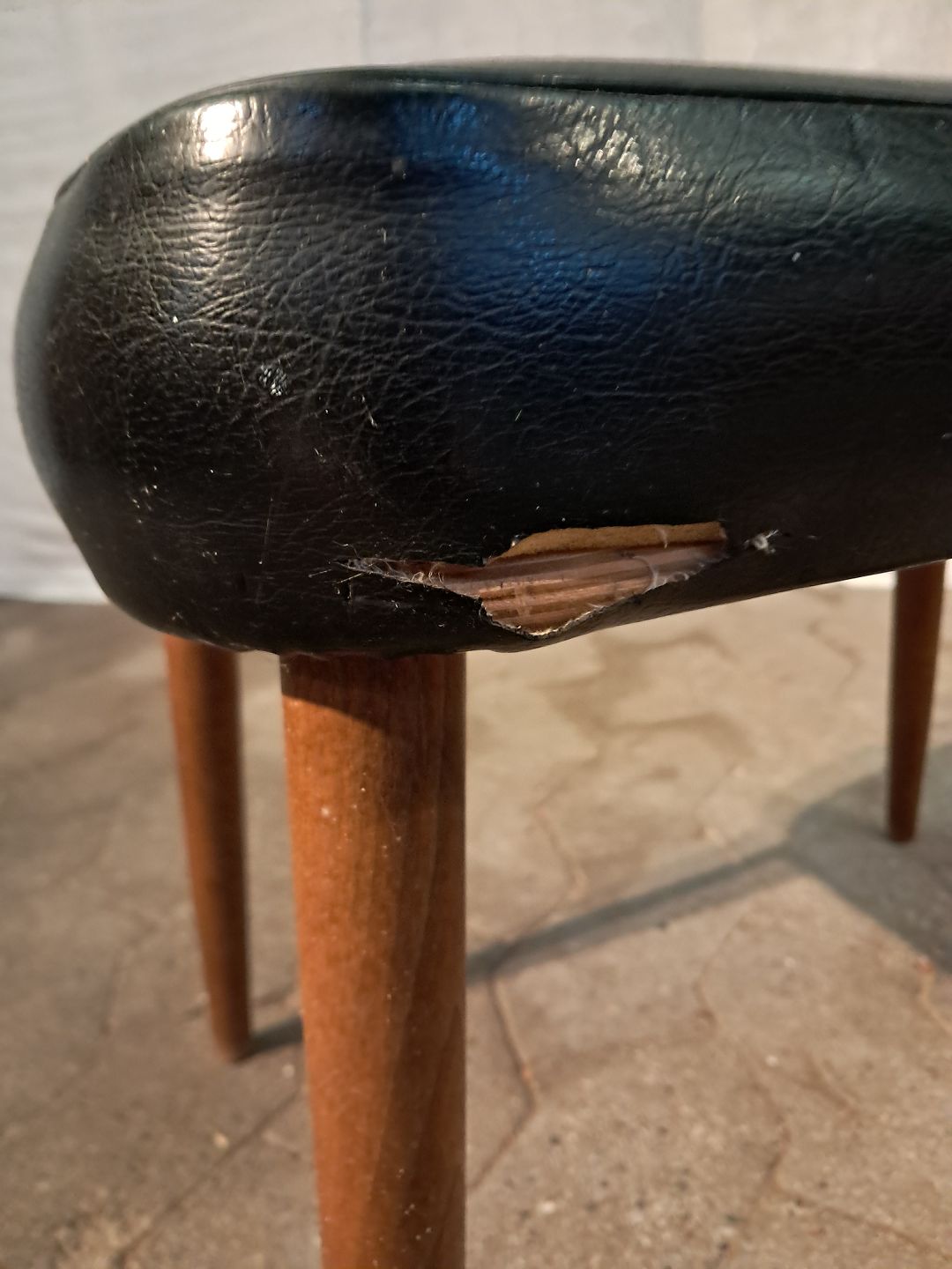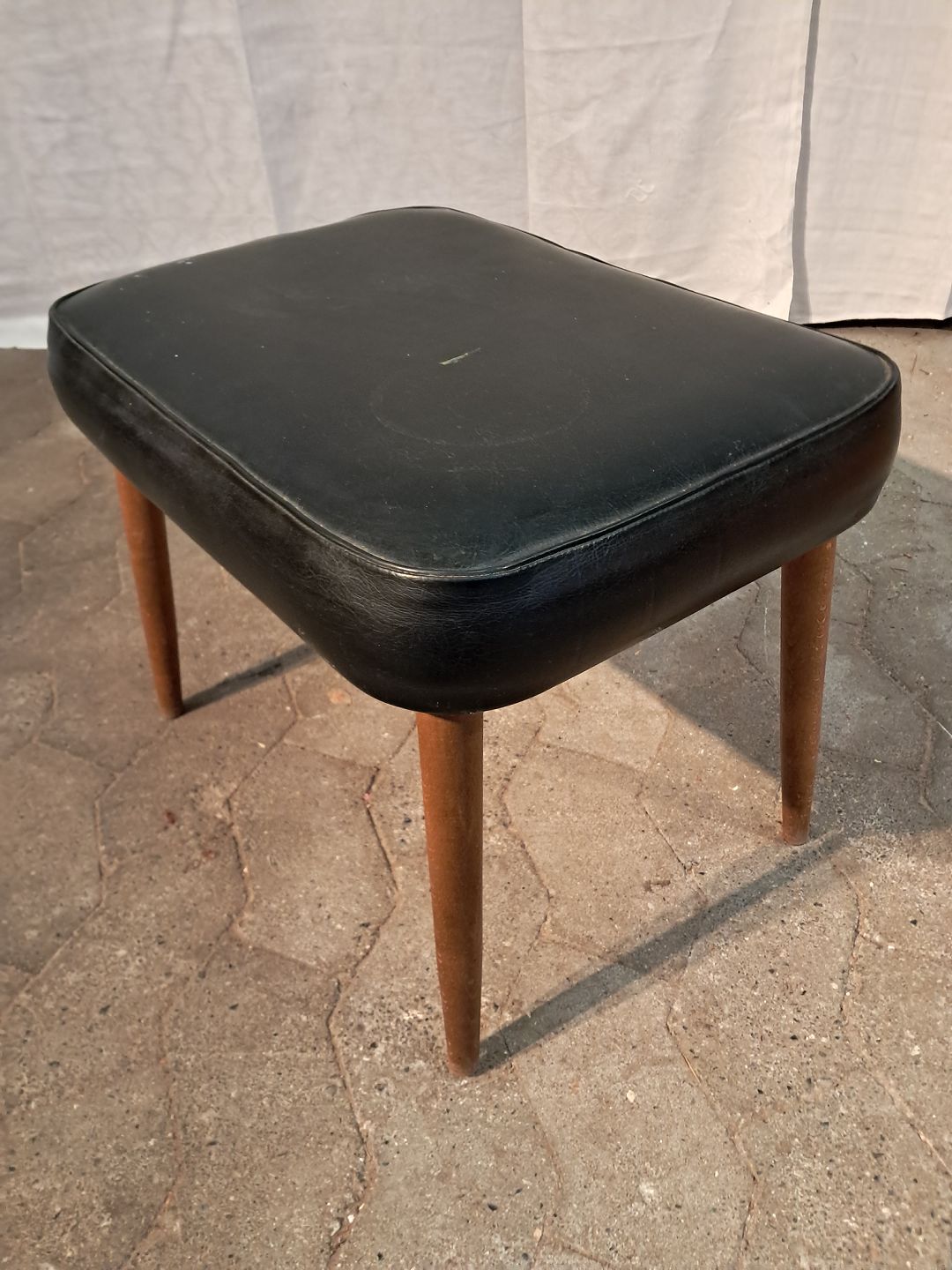 Skammel i bøgetræ og kunstlæder, fra 1960erne.