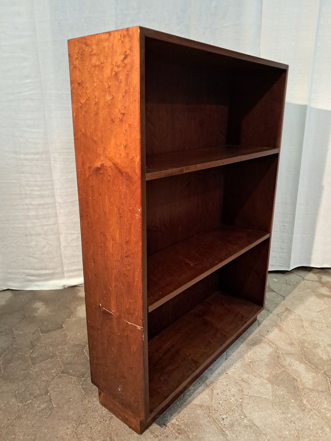 Reol i fineret mahogni, fra 1950erne.