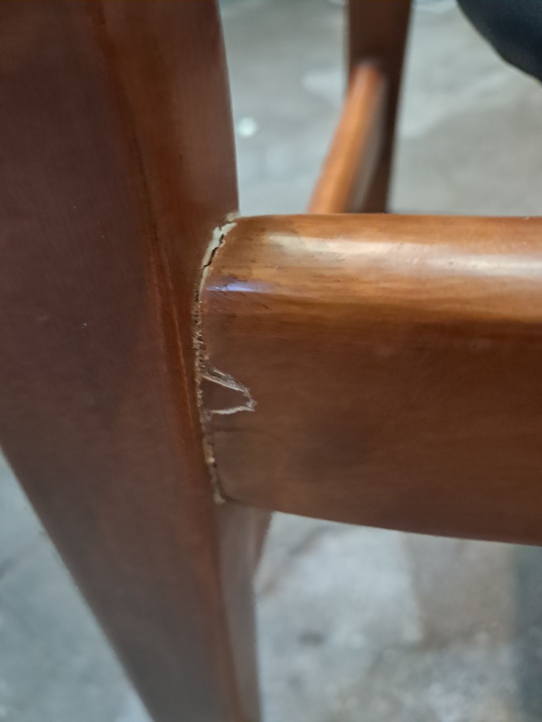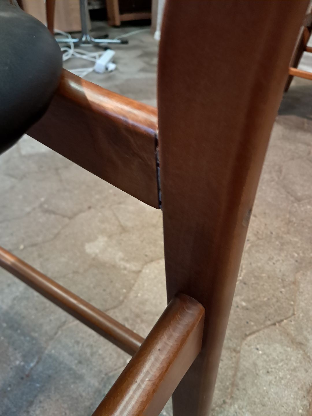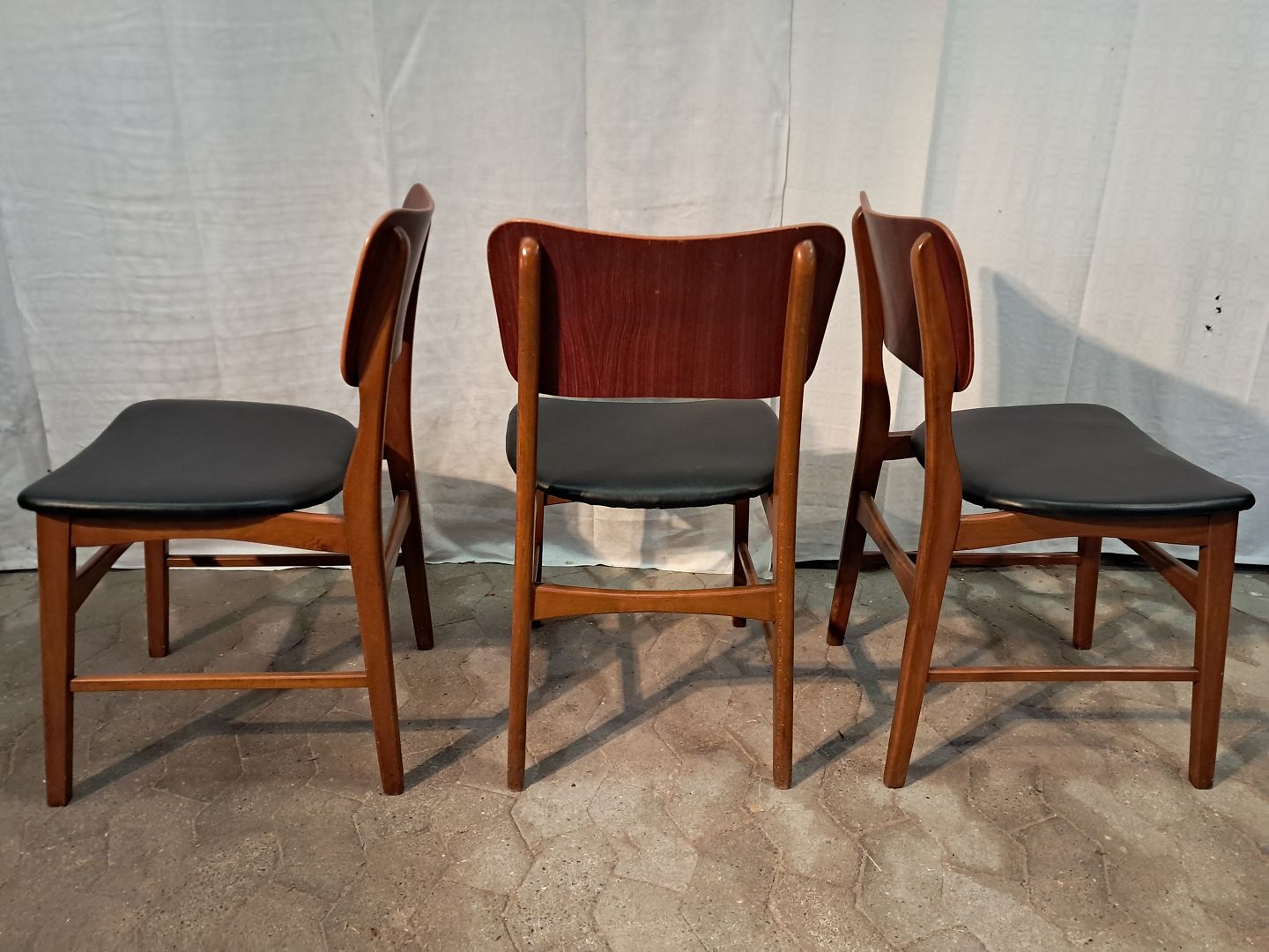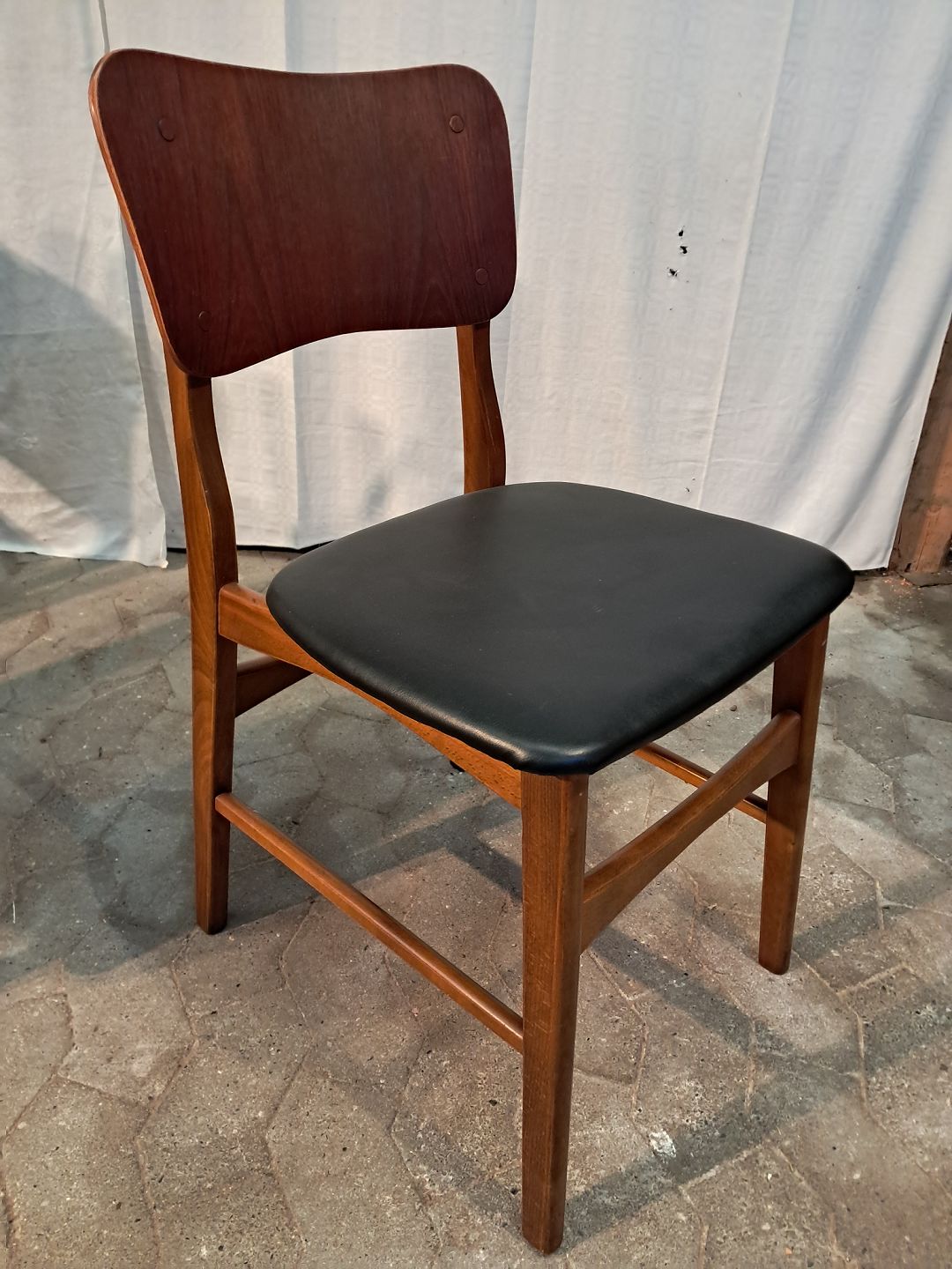 6 Stole i massivt bøgetræ og fineret teaktræ med kunstlæder betræk, fra 1960erne.