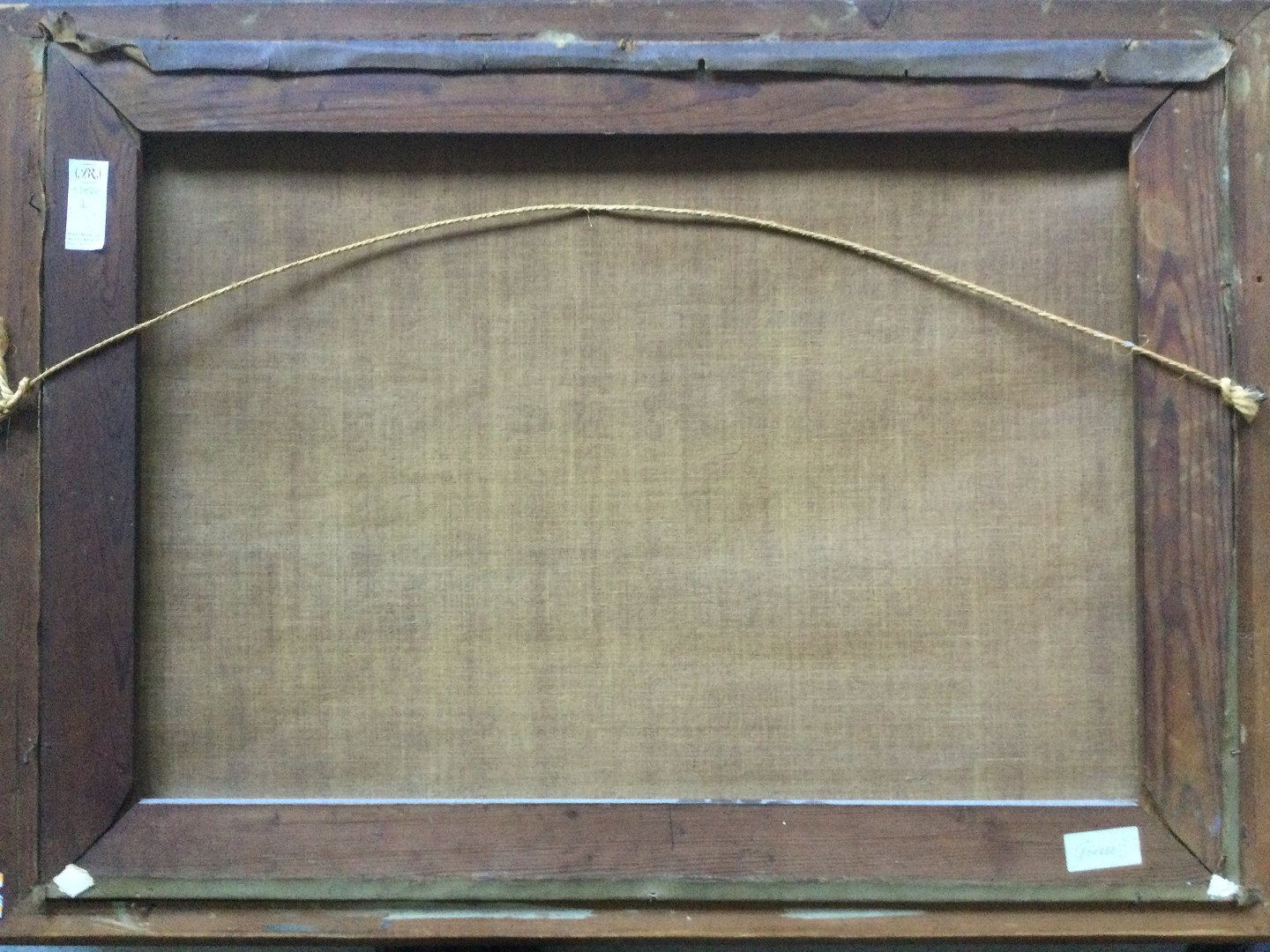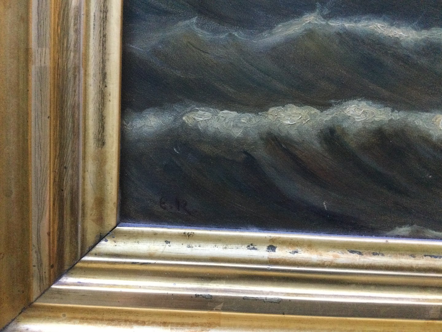 Maleri af Emmery Rondahl - Forblæst kystparti hus hus og båd.