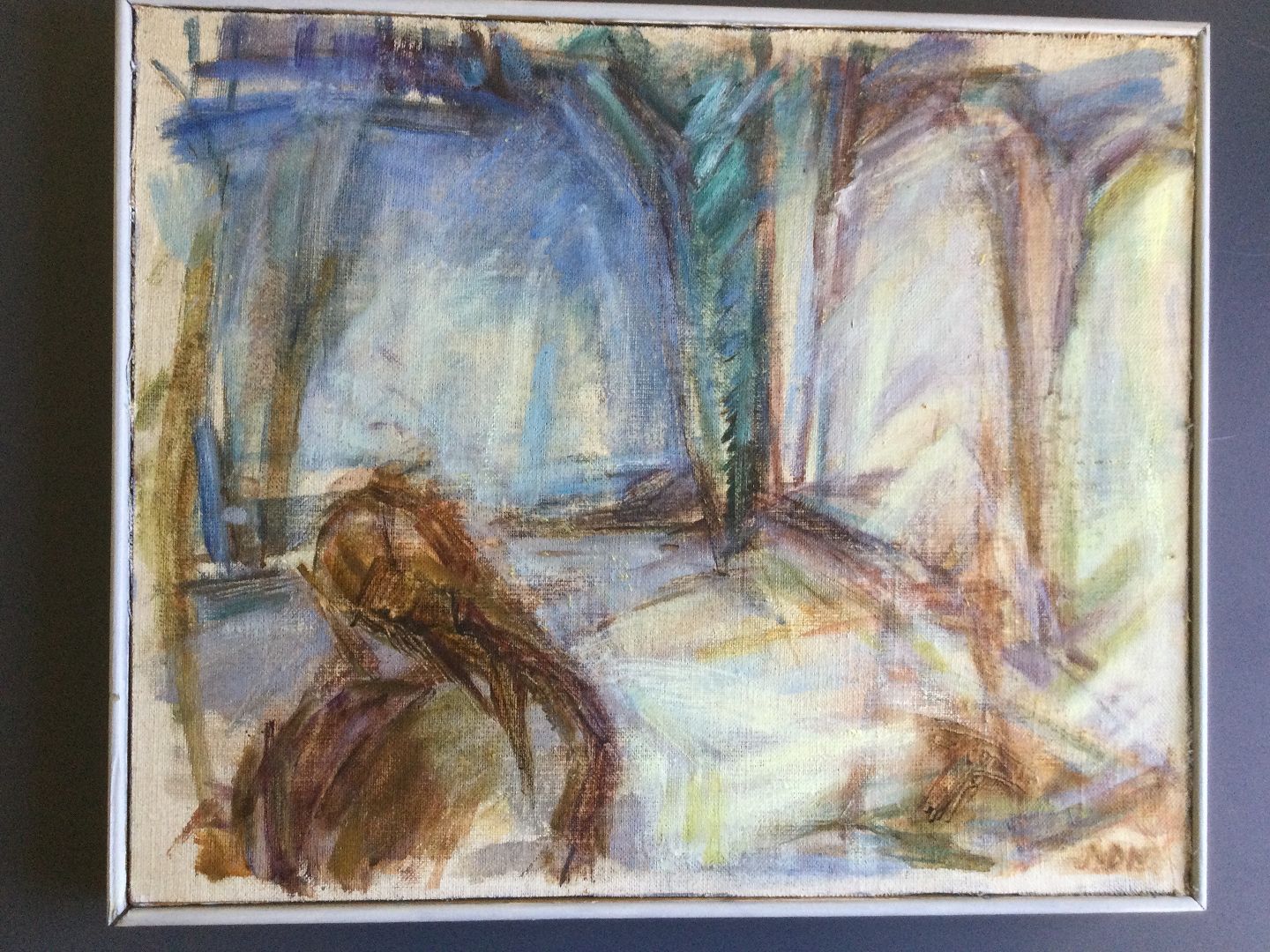 Maleri af Ann-Dorte Nielsen - Person i landskab 1985.