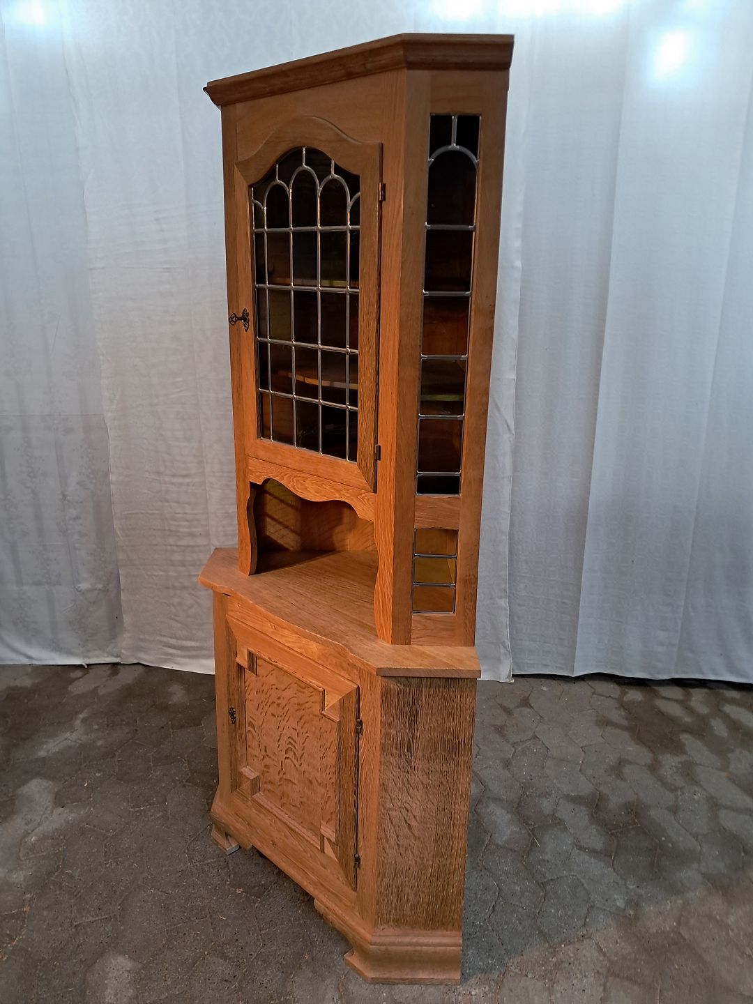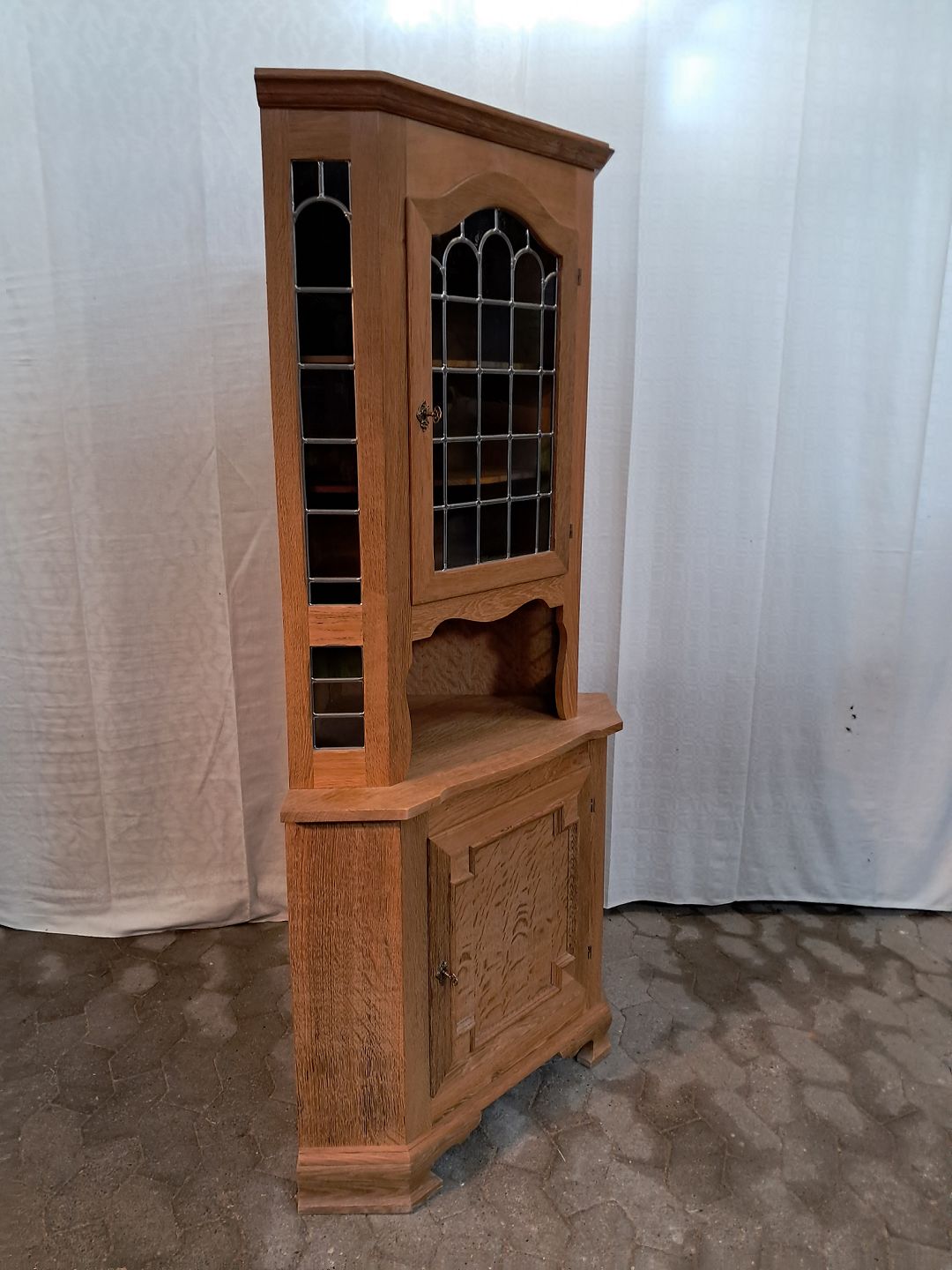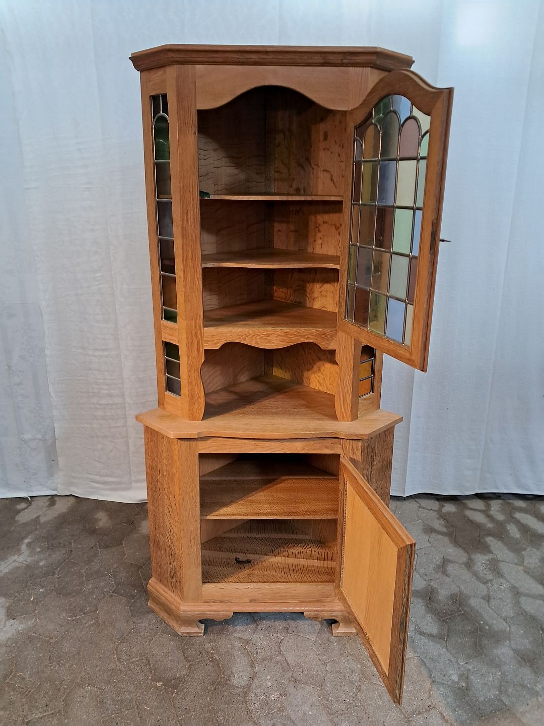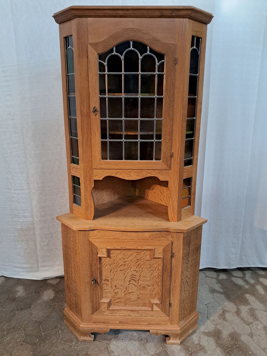 Hjørneskab i massivt og fineret egetræ, fra 1980erne.