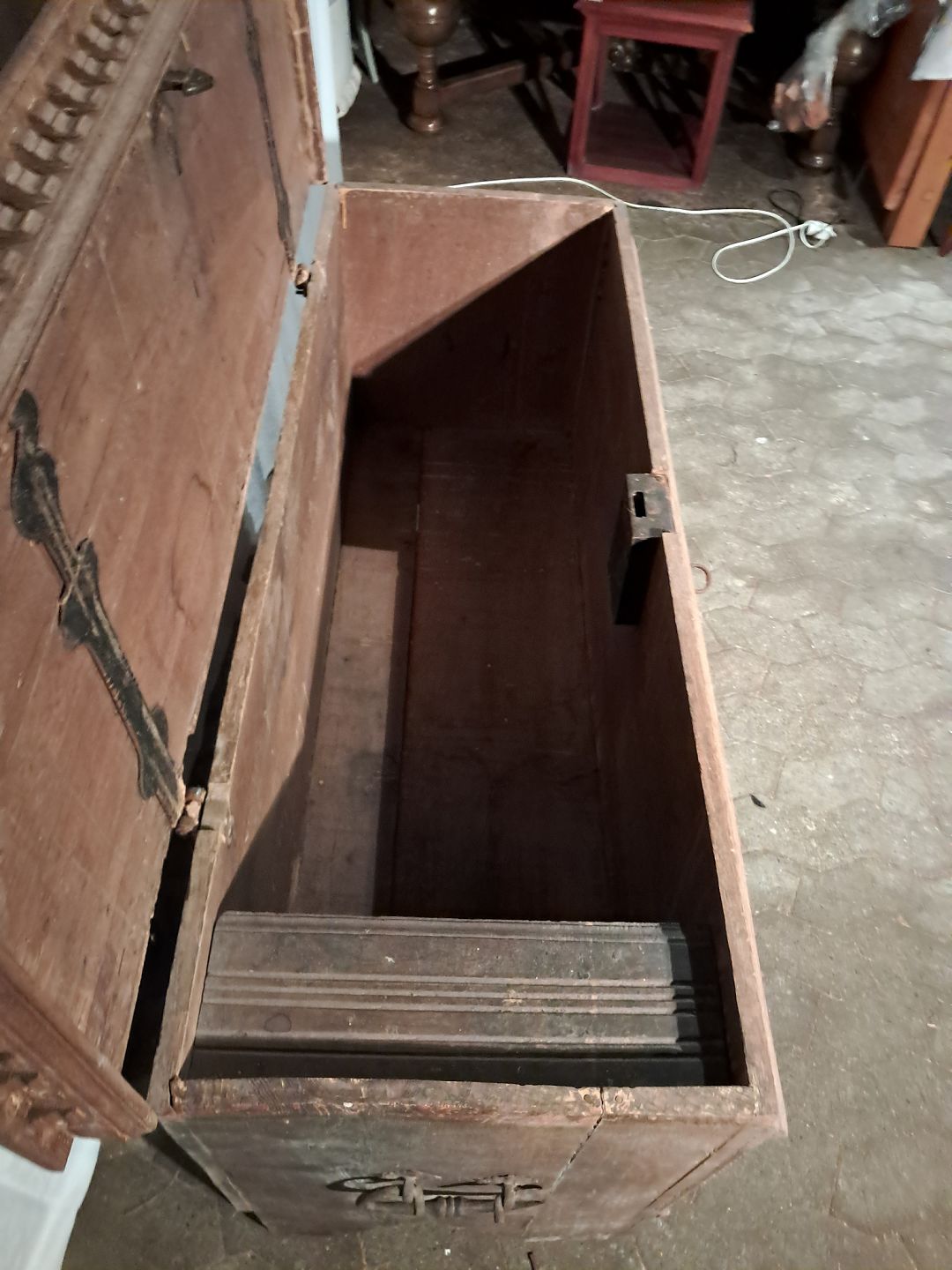 Kiste i massivt egetræ, fra 1860erne.