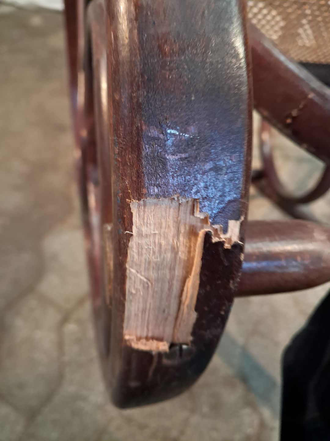 Pynte stol i bøgetræ og flet, fra 1980erne.