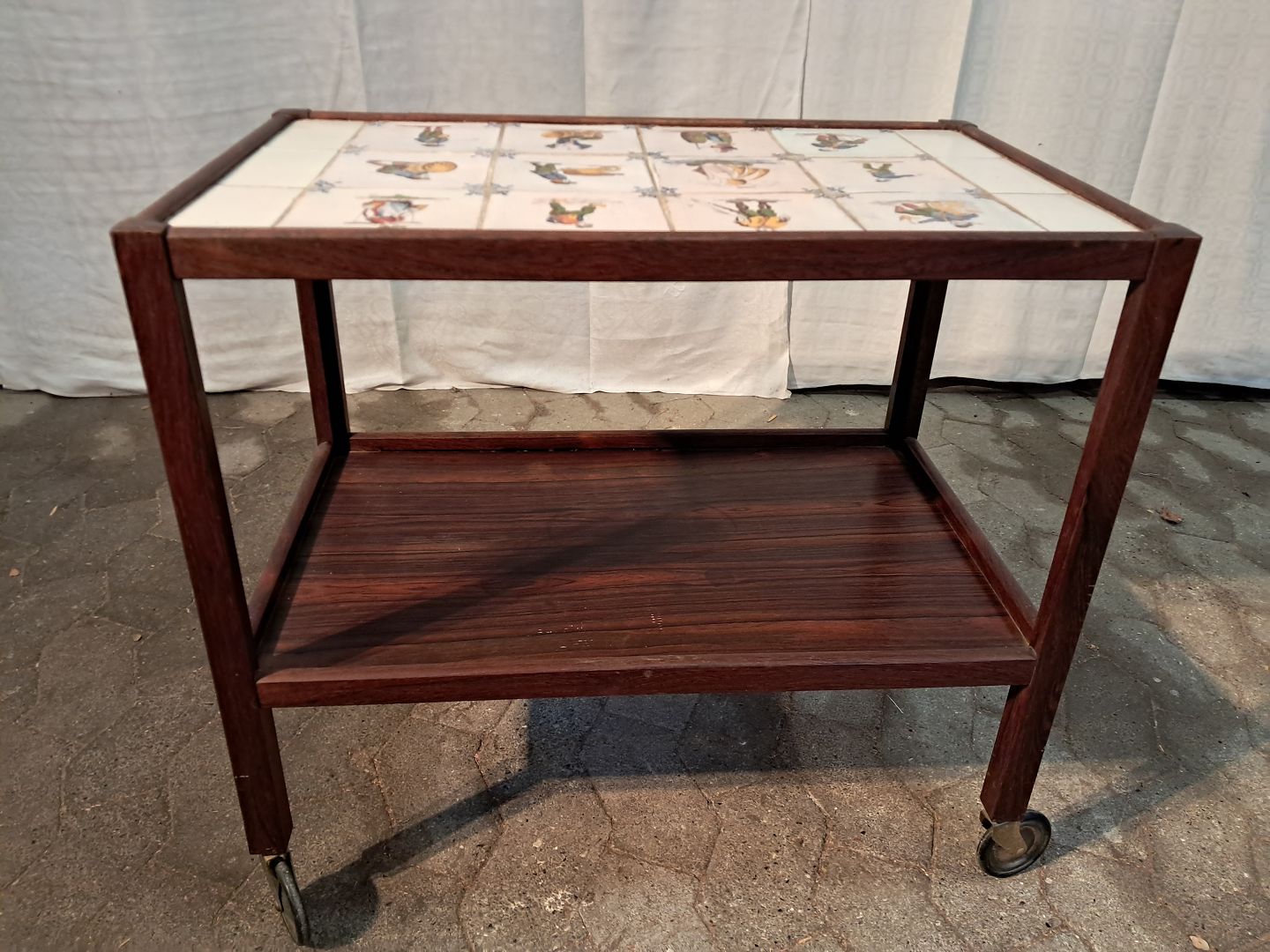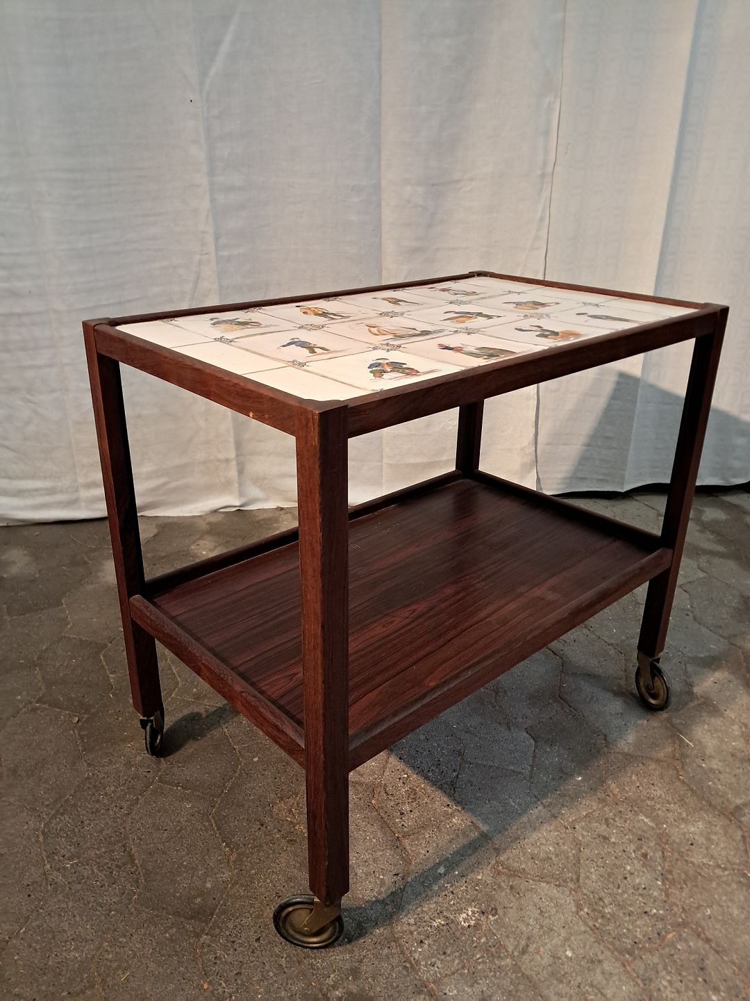Rullebord i palisander med gamle kakler, fra 1960erne.