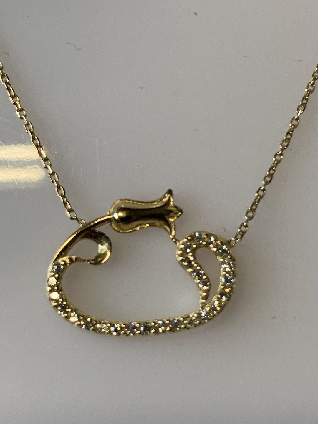 Gold necklace in 14 carat gold, with beautiful pendant and white stones. Stamped KOSUN 585