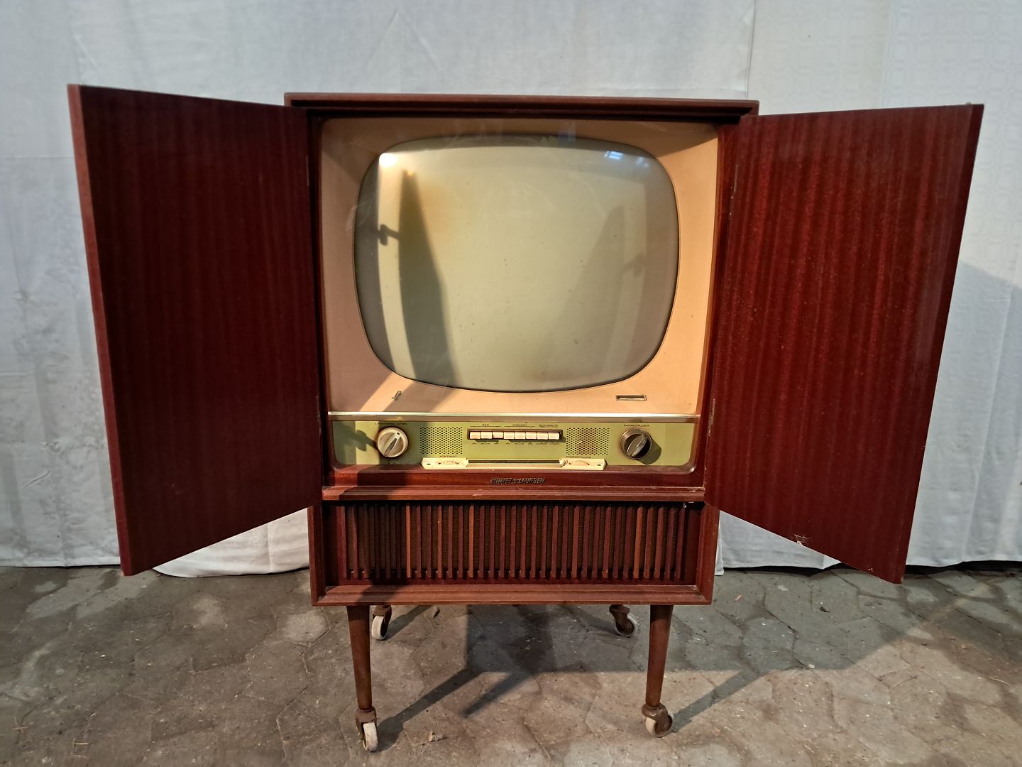 Tv-skab i fineret teaktræ, fra 1950erne.