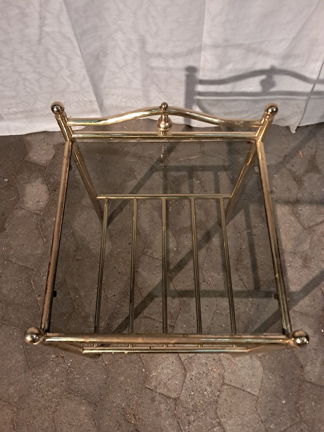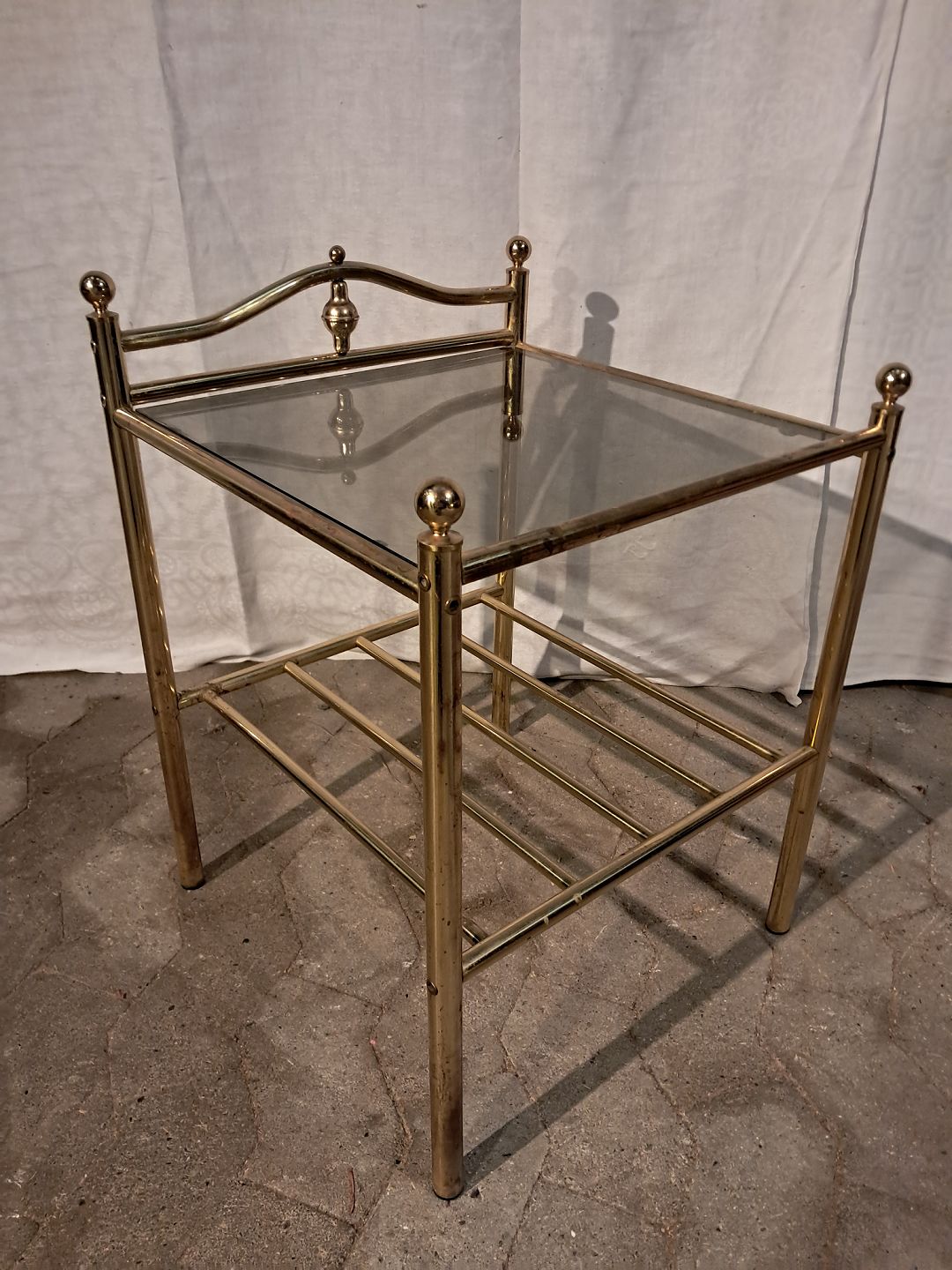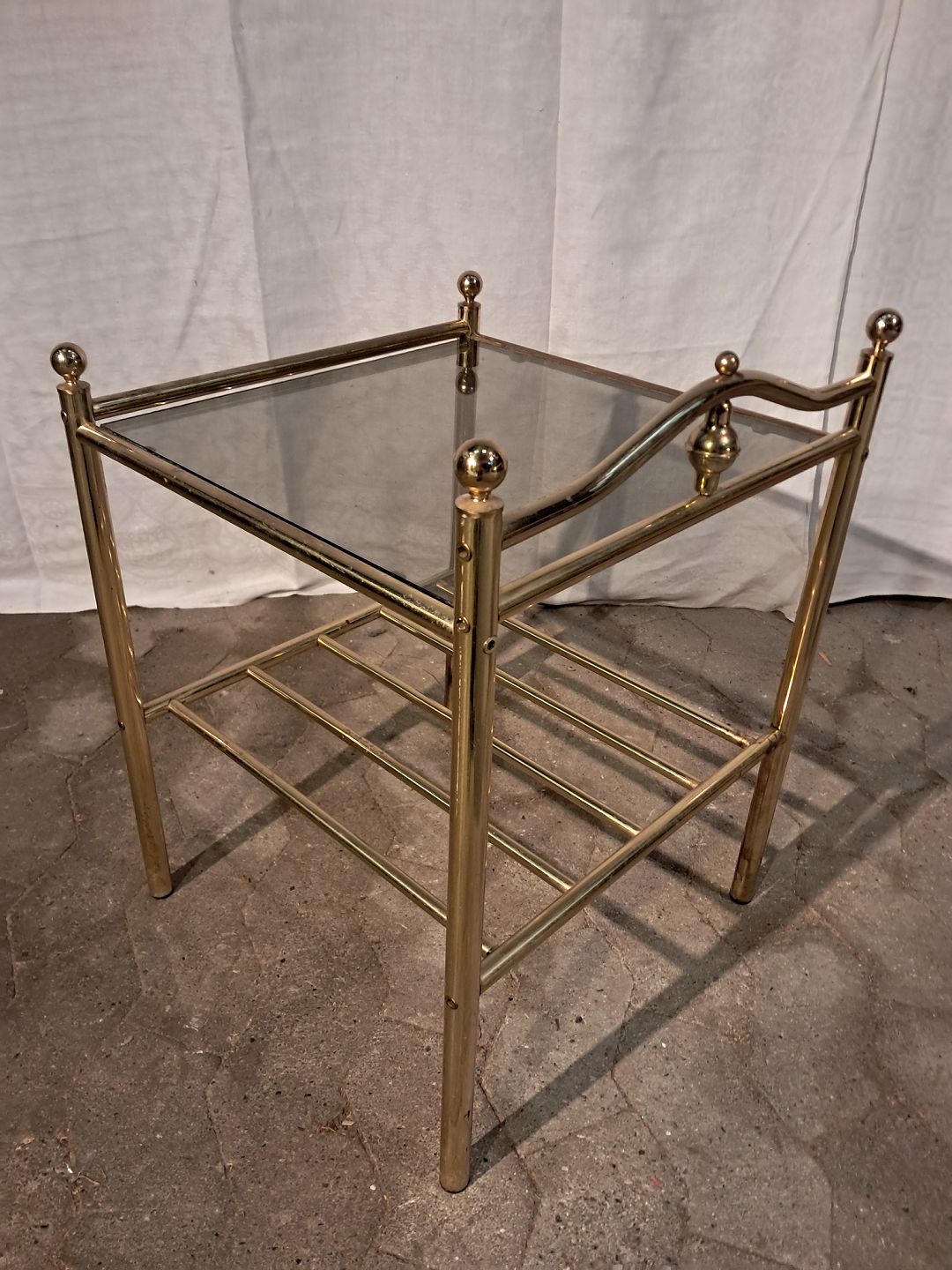Lampebord i metal med glasplade, fra 1980erne.